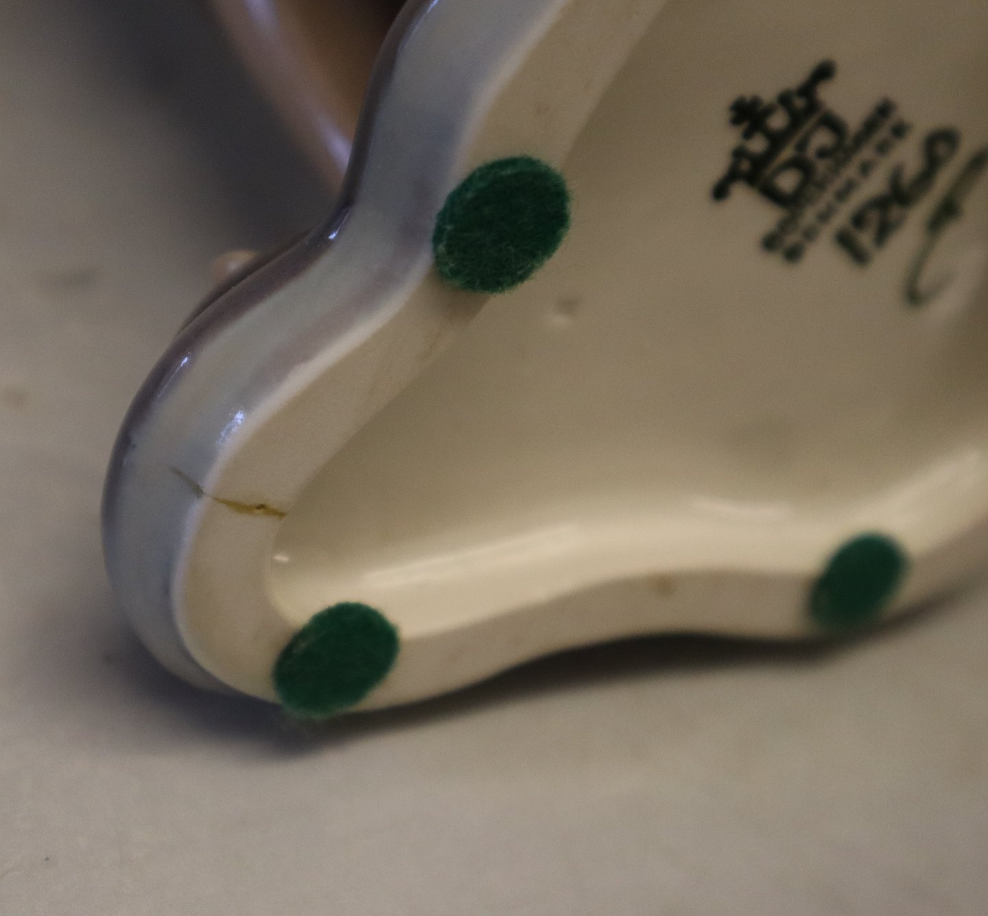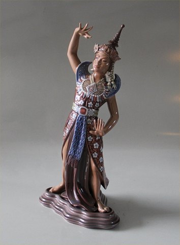 Dahl Jensen 1260 Indokinesisk tempeldanserinde 29 cm (DJ). From Thailand Mærket med kongelig krone og DJ Copenhagen i hel og fin stand bortset fra en brændingsrevne på undersiden - se billeder