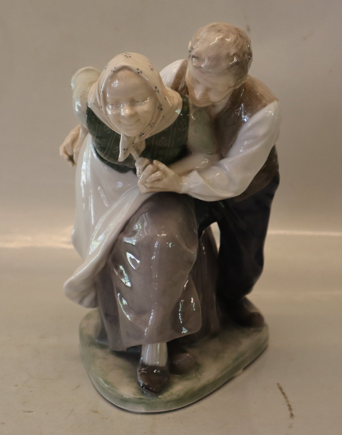 Beskrivelse: Kgl. figur fra Royal Copenhagen 1326 Kgl. Dansende bondepar. Chr. Thomsen 1920 24 x 18 cm I hel og fin stand 1. sortering før 1923