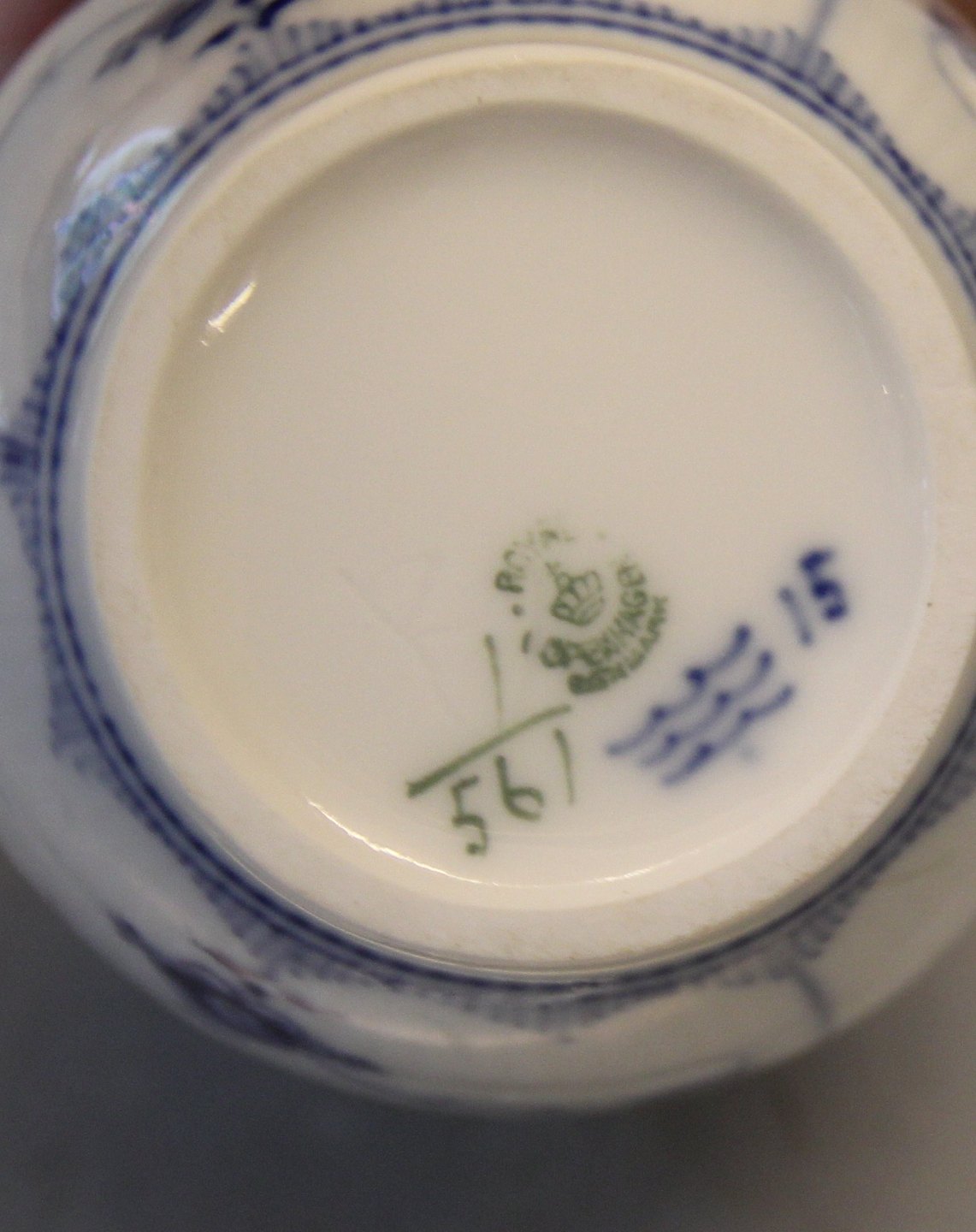 Beskrivelse: Kongelig Dansk Porcelæn Musselmalet Halv blonde. 561-1 Mælkekande 13,5 cm I fin og hel stand Blue Fluted half lace