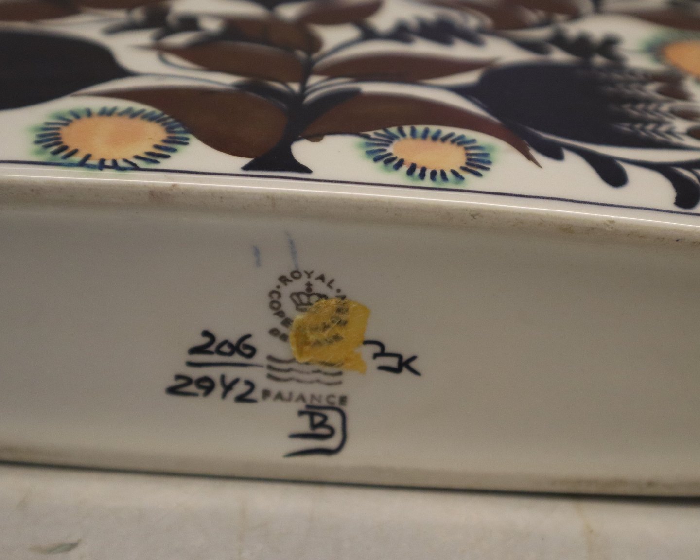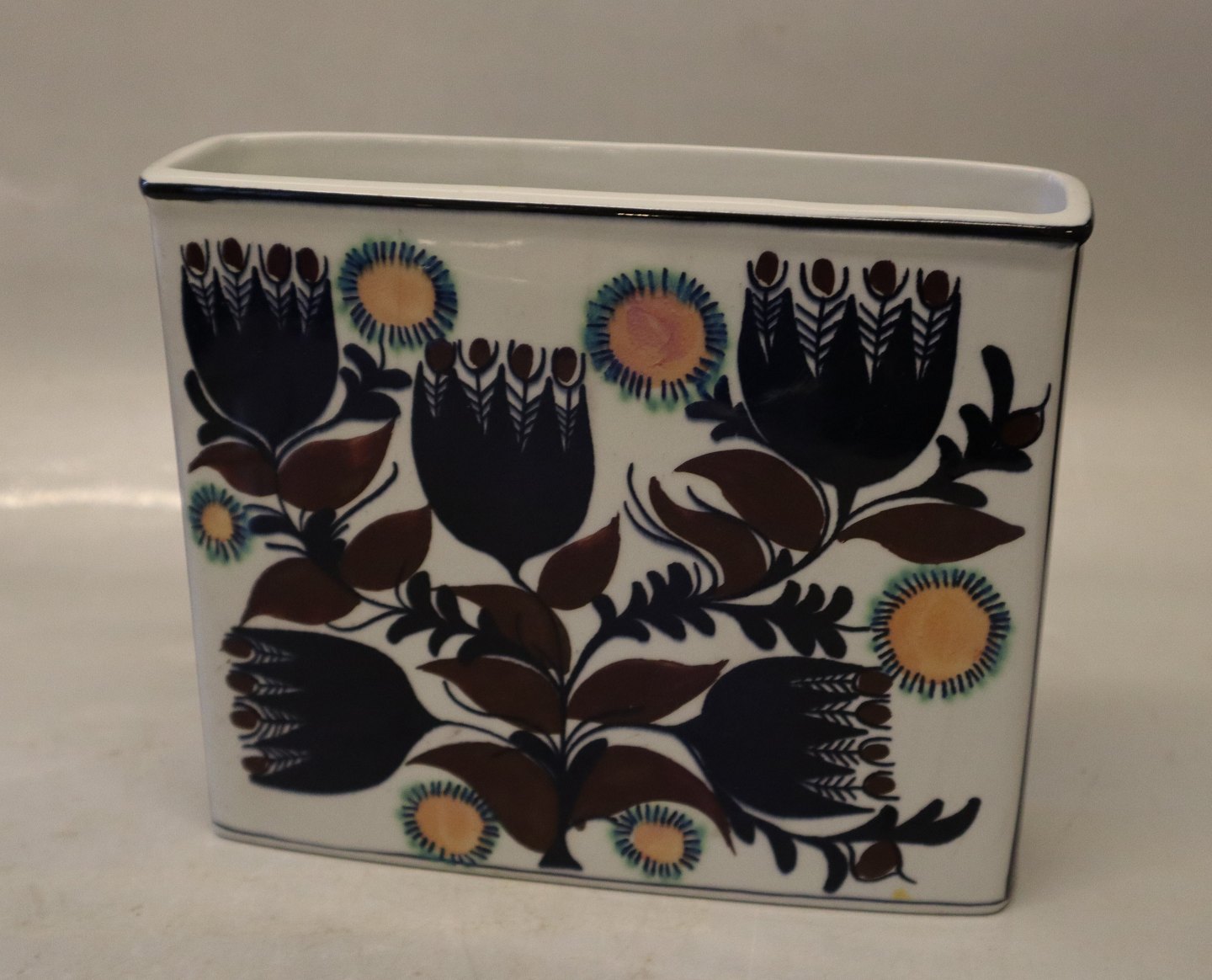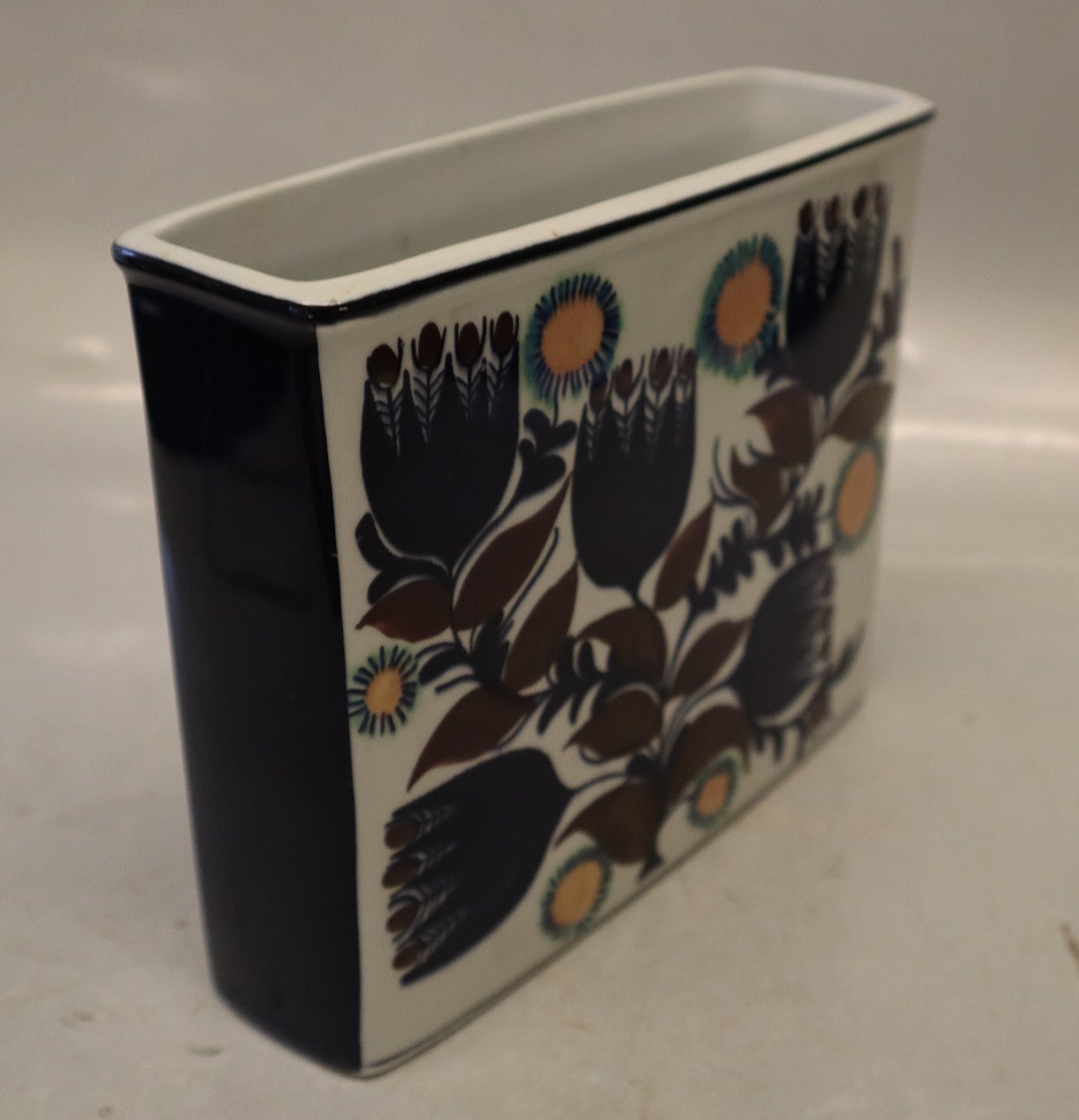 Royal Copenhagen Aluminia fajance 206-2942 Vase firkantet med blå blomster, Berte Jessen Design I.K 1961 15 x 18.5 x 6 cm Tenera