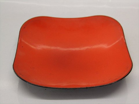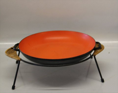 Retro IHQ Quistgaard Design ? Lav gryde sort og rød emalje på fod af metal og flet 28 cm
