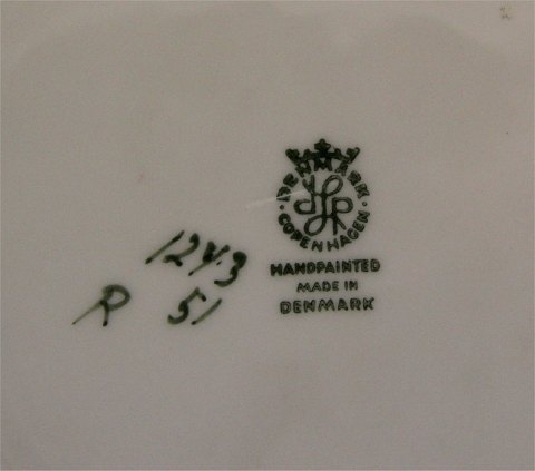 Stemplet med Kongelig Krone, Handpainted, Copenhagen, Made in Denmark. Også kendt som Københavns Porcelænsmaleri (KPM)