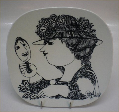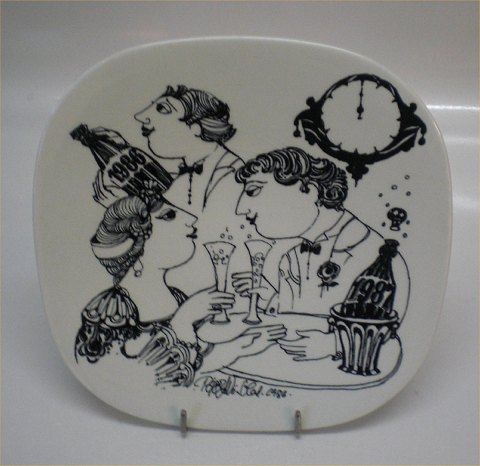 1986-1987 Nytår. Nymølle Keramiske fabrik, firkantet, sort 19 x 19 cm
