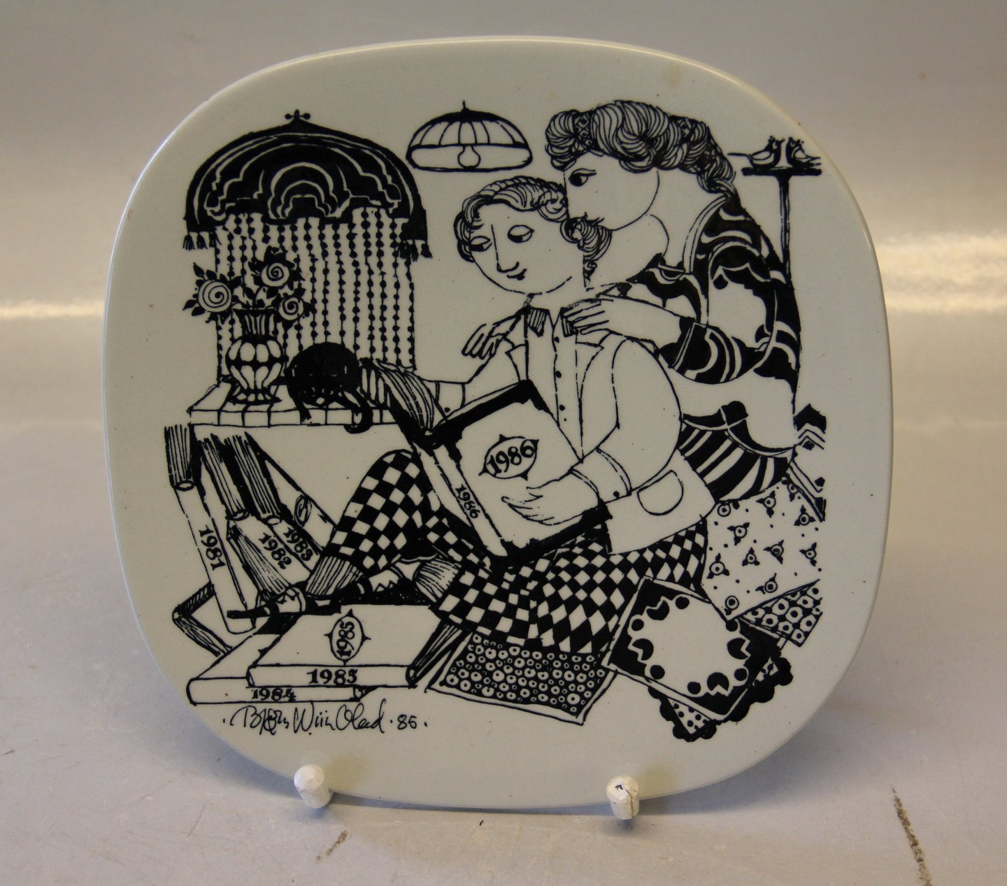 1988-1989 Årets maleri. Nymølle Keramiske Fabrik, sort, firkantet 19 x 19 cm