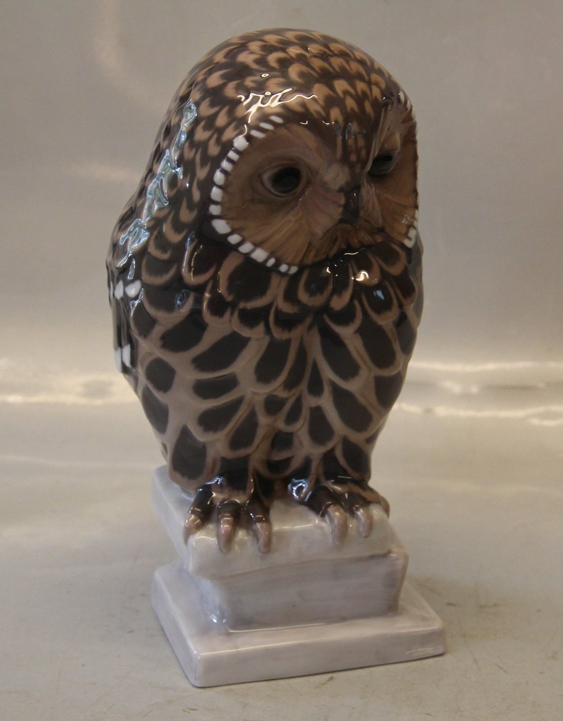 : Bing & Grøndahl fugl B&G 2424 Stor ugle på fod ca 27 cm, K. Otto I fin og hel stand.