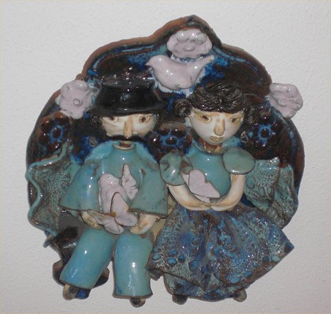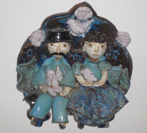 Beskrivelse: Sjovt Stentøjs Relief fra Bornholm Kirsten Clemann 45 x 40 cm