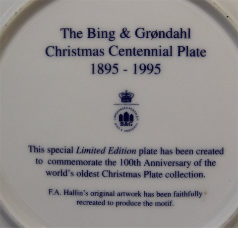 : Bing & Grøndahl Platte 1895-1995 Juleplatten 100 år I fin og hel stand.