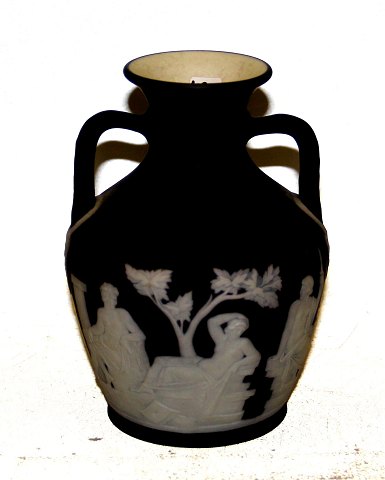 Klassisk Wedgewood vase I sort og hvid 15.5 cm
