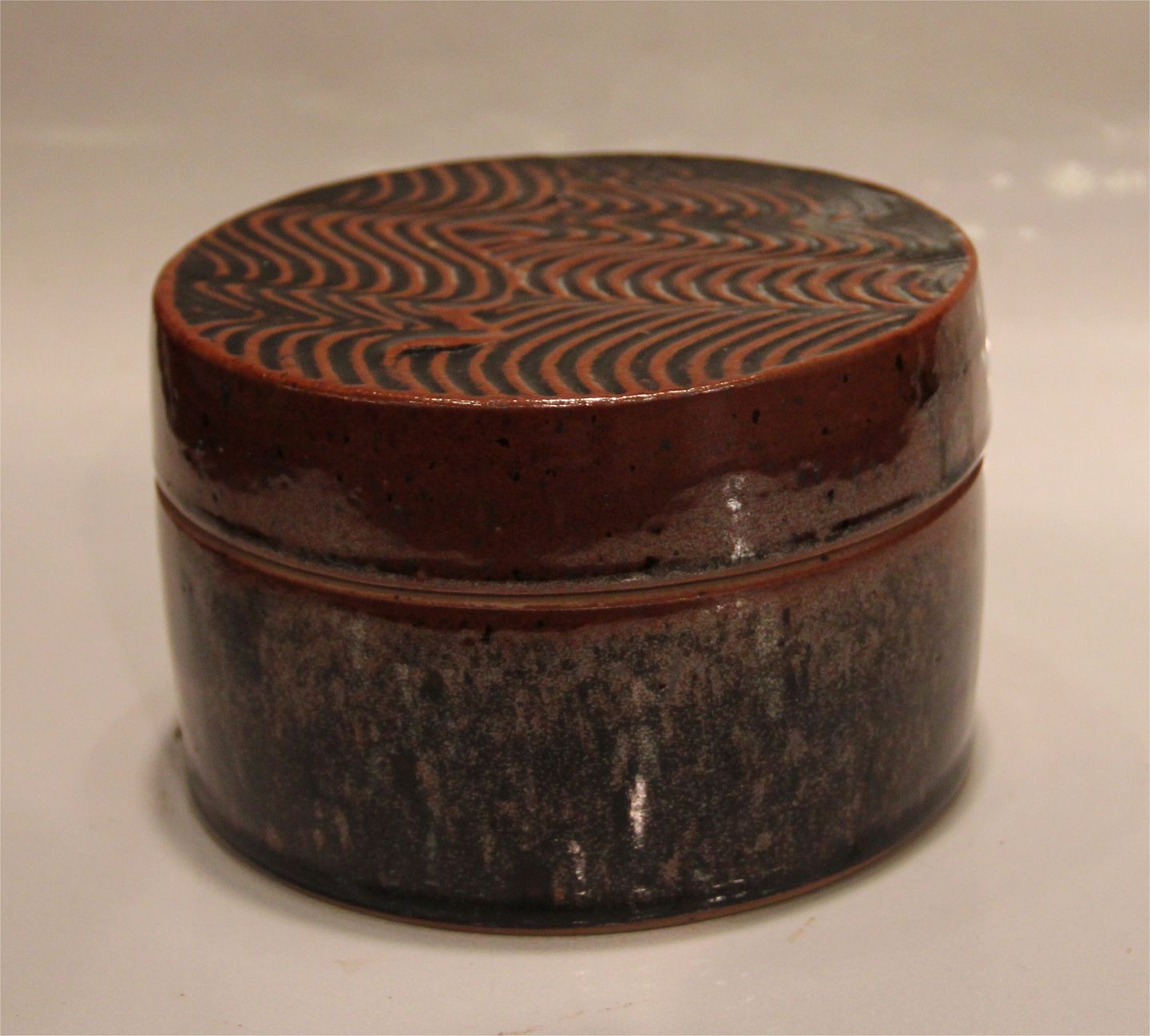 Finn Lynggaard (1930-2011) Rund Brunglaseret box 11 x 16 cm