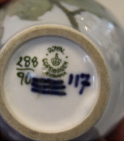 Beskrivelse: Kgl. 288-90 Kgl. Gourd Vase 15 cm 2. bobler I porcelænet under glasuren fra Royal Copenhagen