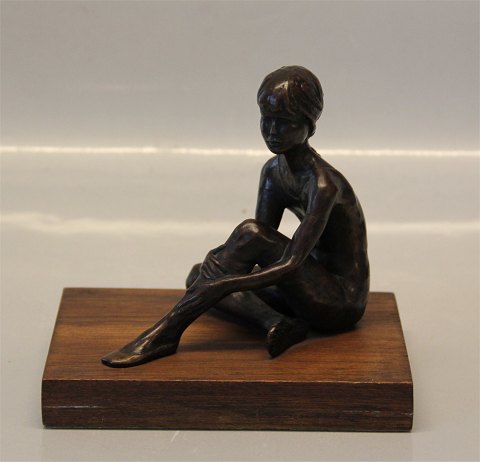 Beskrivelse: Sterett-Gittings Kelsey Bronze Siddende Balletpige 14 x 11 x 21 cm på træfod Nr 114 af 500 Royal Copenhagen 1975