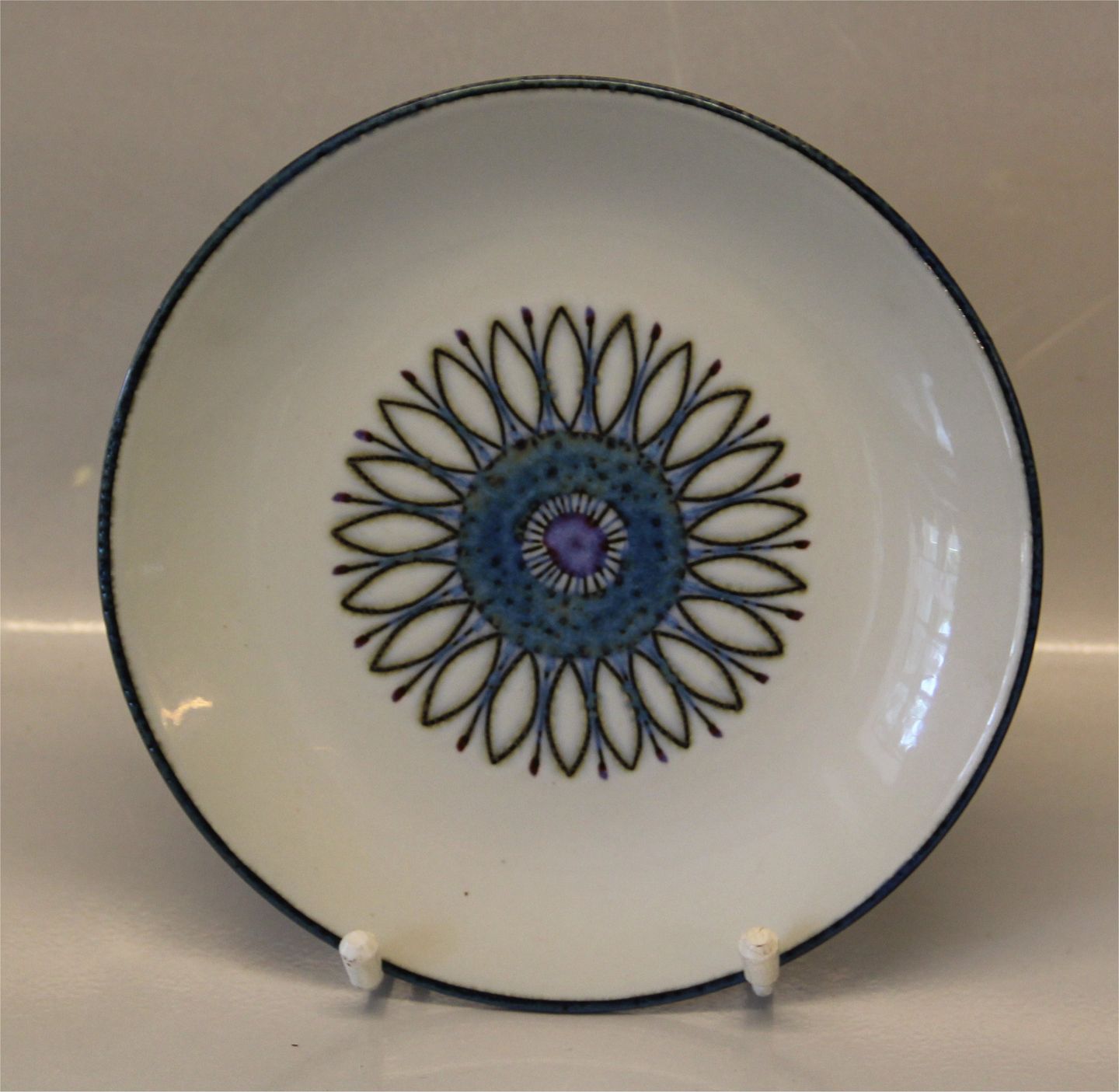 Beskrivelse: Royal Copenhagen Aluminia fajance 613-3489 Kagetalleren 18 cm Annette testel, Berte Jessen 1966