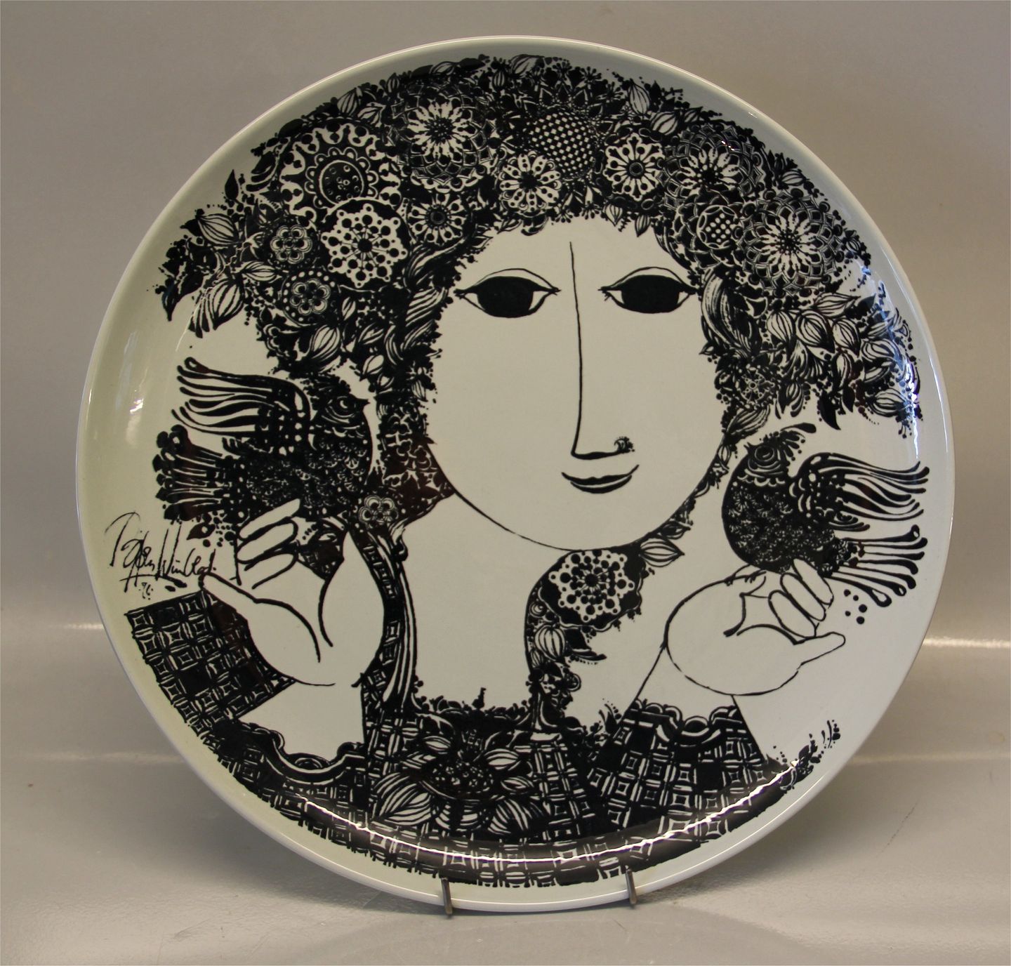 : Wiinblad Nymølle 3565 Mette Stort rundt væg fad 35,5 cm Bjørn Winblad