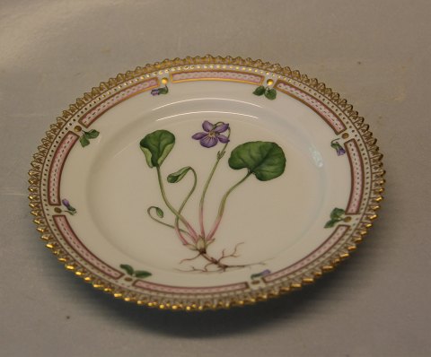 Beskrivelse: Royal Copenhagen Flora Danica 20-3552 Viola epipsila Ledeb Sidetallerken 14,5 cm (1969-1974) Blomstermotiver på guldbelagt perlestel. 1. sortering i fin og hel stand
