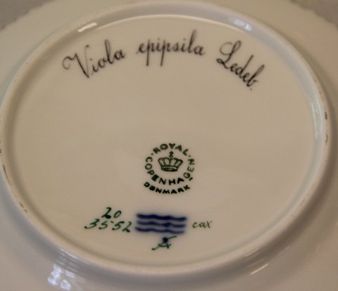 Kongelig Dansk Porcelæn Flora Danica 20-3552 Viola epipsila Ledeb Sidetallerken 14,5 cm (1969-1974)