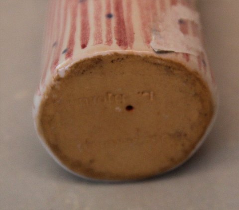 L. Hjorth miniature Stånde kvinde med røde linieret national dragt ca 10 cm