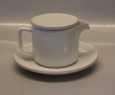 6265 Sauceskål 3 dl. med låg 6318 og løst fad 6238 (563) Rødtop Kgl. Hvidt Porcelæn med rød kant Design Grethe Meyer fra Royal Copenhagen (Weisstopf)