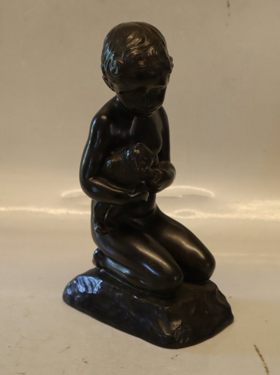 Bronzeret Just A. Disko: D 2320 Girl with Teddy 23 cm Elna Borch