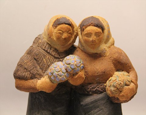 Dansk Stentøj B&G 1980 Unika Skulptur Tokvinder med blomster ca 26 x 31 cm Signeret K. Otto