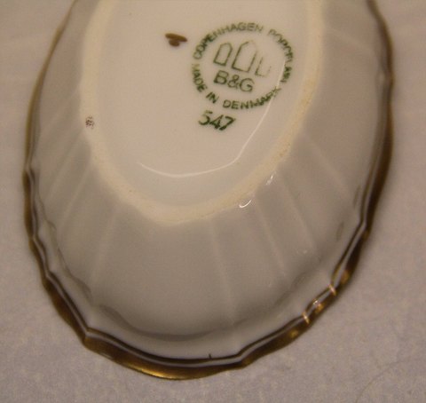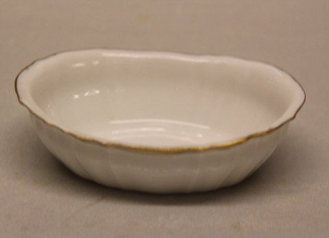 Beskrivelse: Bing & Grøndahl Offenbach 055 Saltkar 3,5 x 9 cm (547) Hvidt kantet porcelæn med bred guldkant.Bing & Groendahl I hel og fin stand
