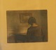 Peter Ilsted Opus 1. Ung Pige ved et halvrundt Bord. Signeret Peter Ilsted Lysmål 15,7 x 20 cm  1909 Farve-Mezzotinte. Samtidig slidt guldramme 45 x 41 cm