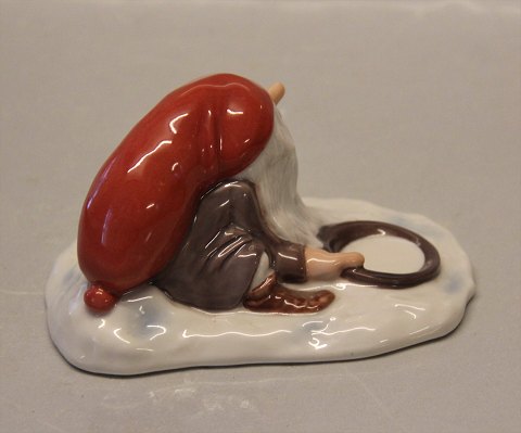0370 Kgl. Nisse med grødskål Harald Wiberg 8 x 13.5 cm Pixie Kgl. B&G figur fra Royal Copenhagen