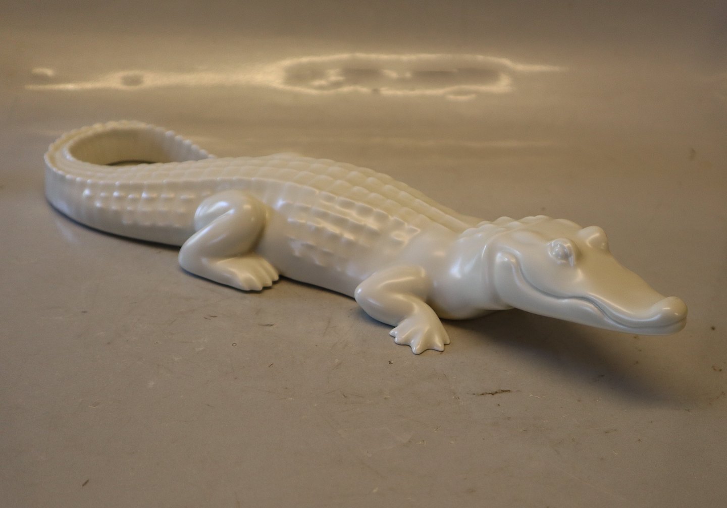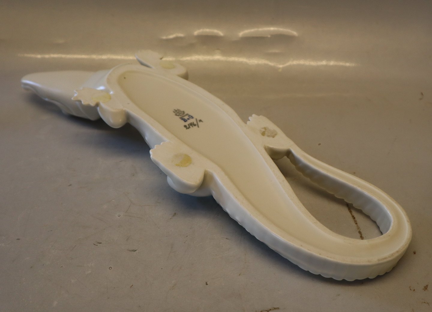 Beskrivelse: Bing & Grøndahl B&G 2155 Krokodille 6 x 38.5 cm, Mat glasur Celadon AJ Armand Petersen Kaiman