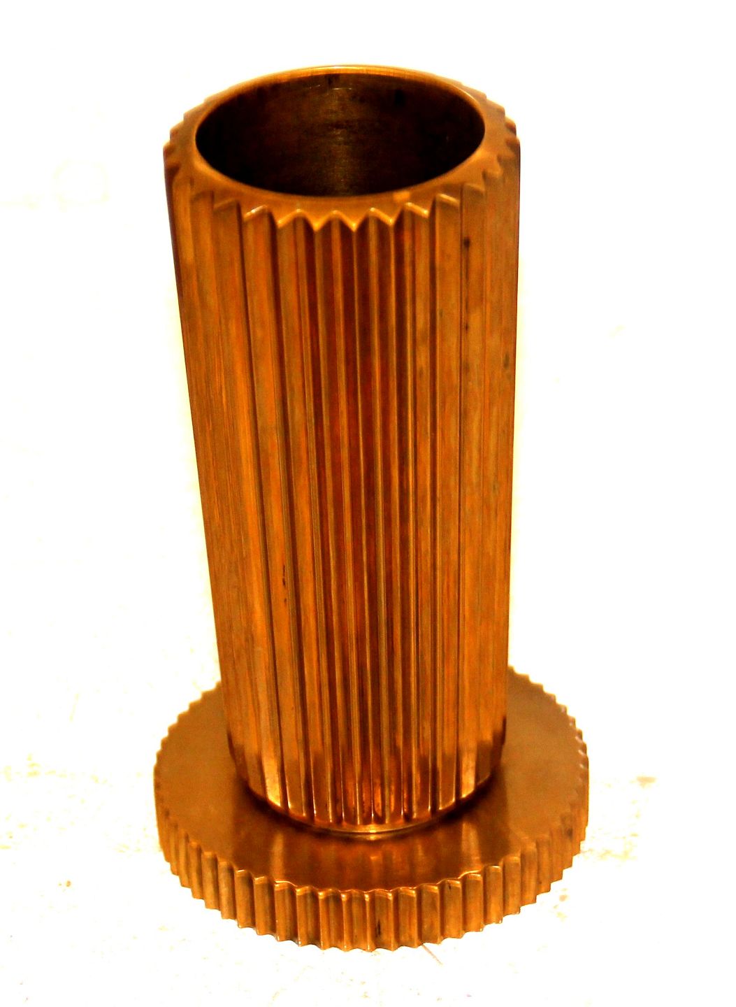 Beskrivelse: Tinos Kanneleret Lysestage 13.5 cm Vase Patineret forgyldt bronze. Made in Denmark Fin patina Moderne Dansk Design