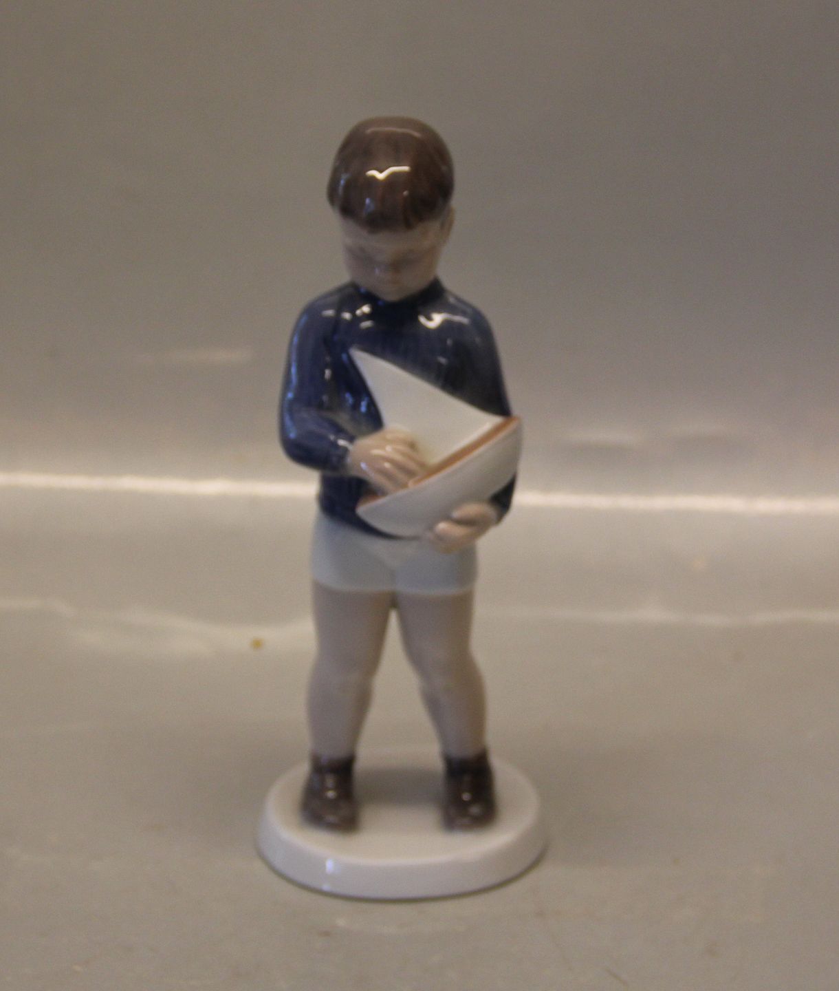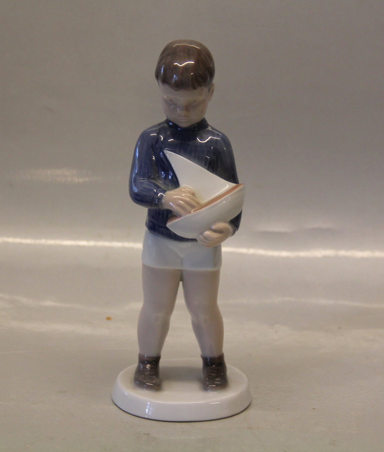 : Bing & Grøndahl B&G 2380 Dreng med sejlbåd 18 cm, Claire Weiss I fin og hel stand.