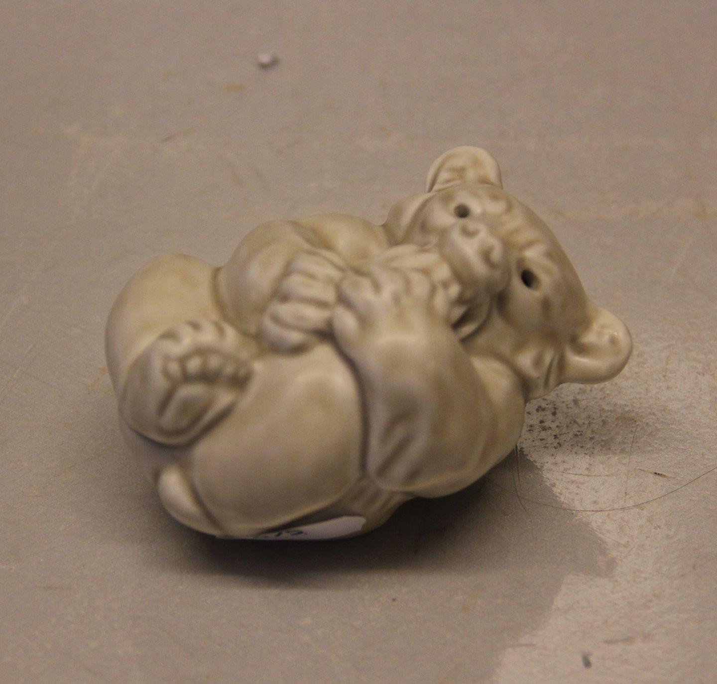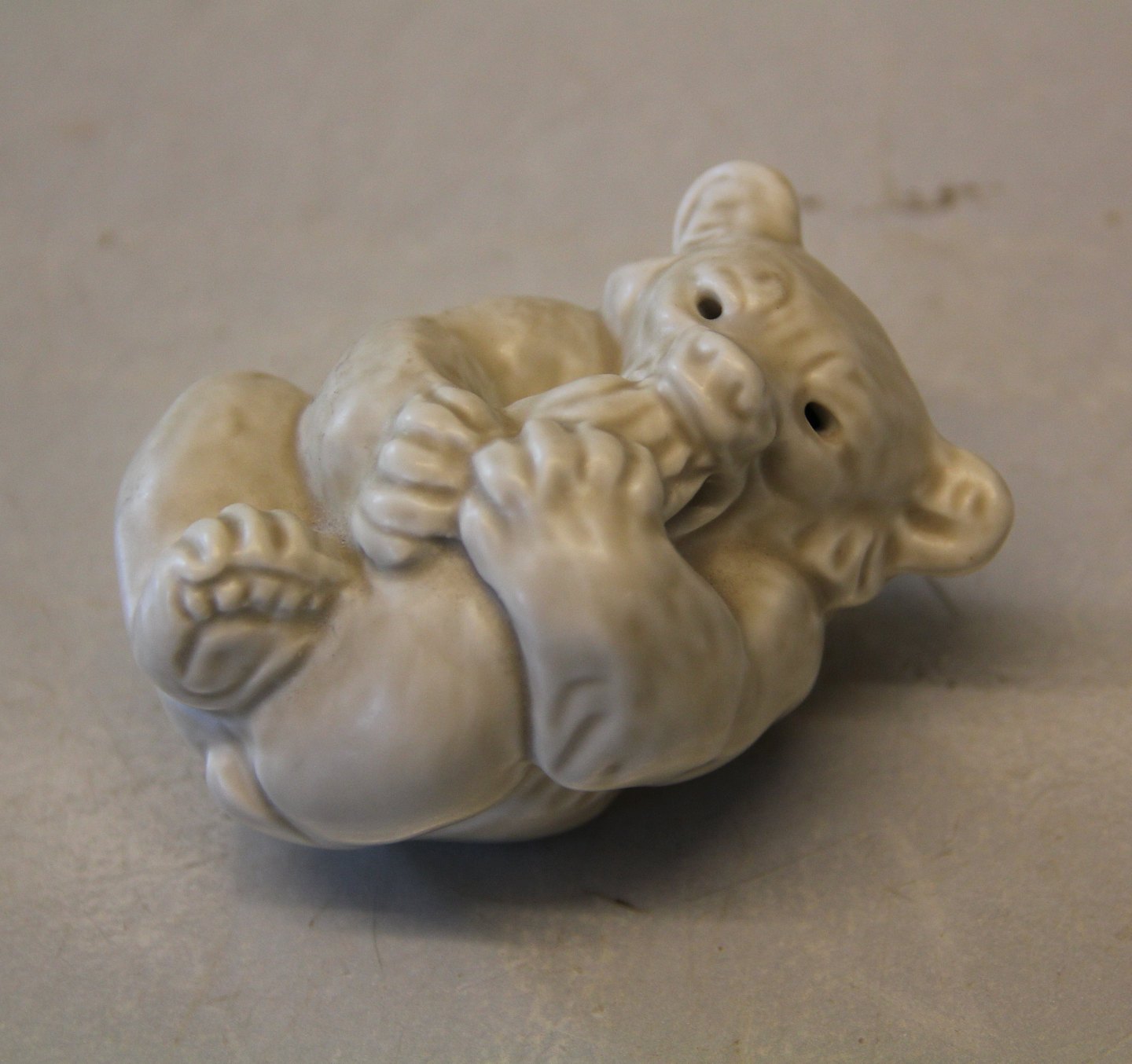 21434 Kgl. Celedon glasseret bjørneunge på ryggen (1 49 234) Knud Kyhn, feb. 1957