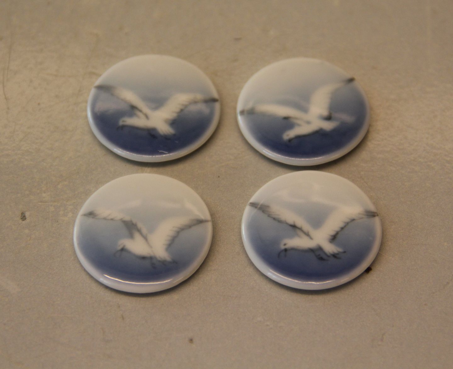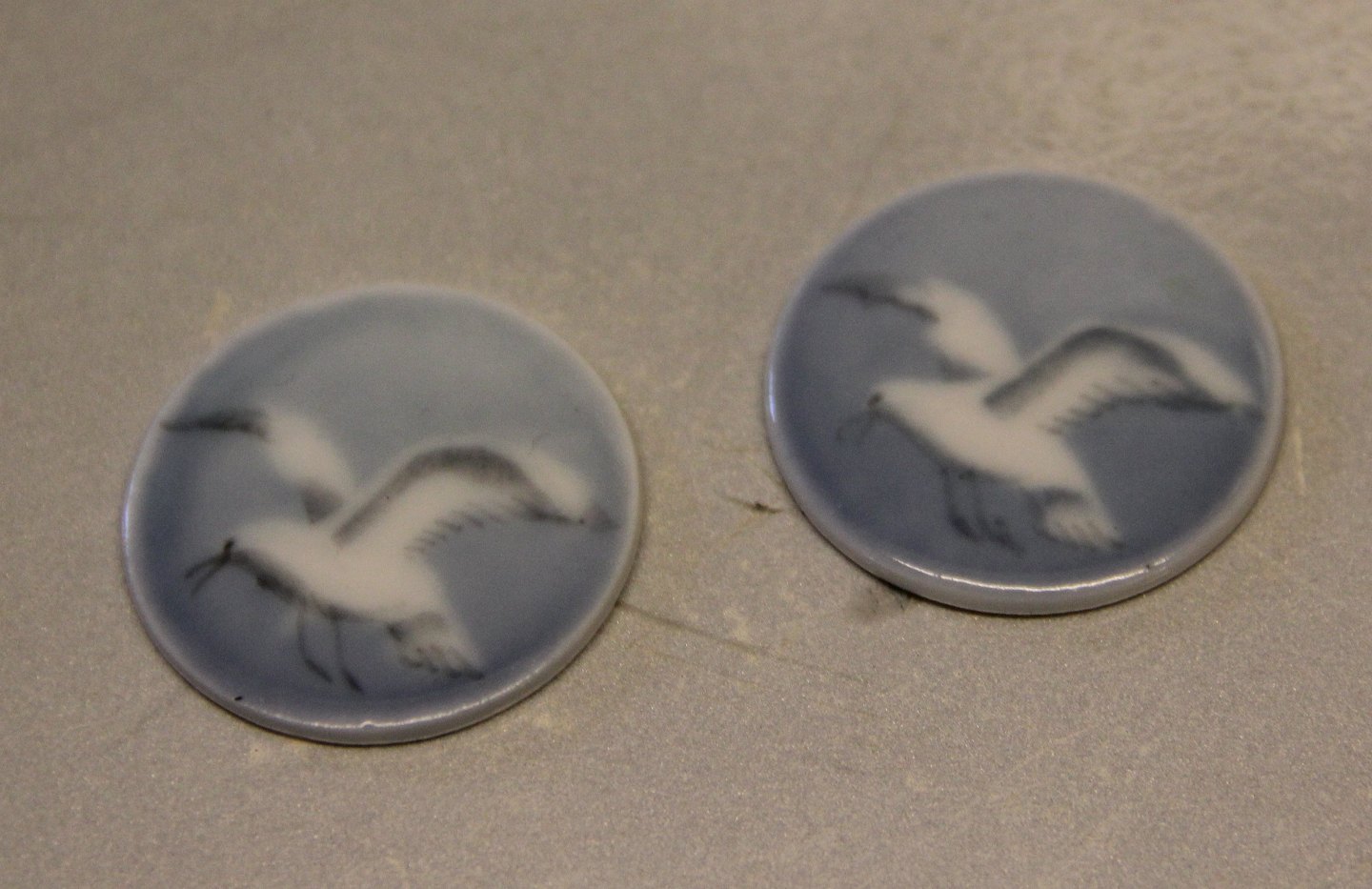 Knapper ca 3 cm plaketter Bing & Grøndahl Mågestel uden guldkant. I hel og fin stand