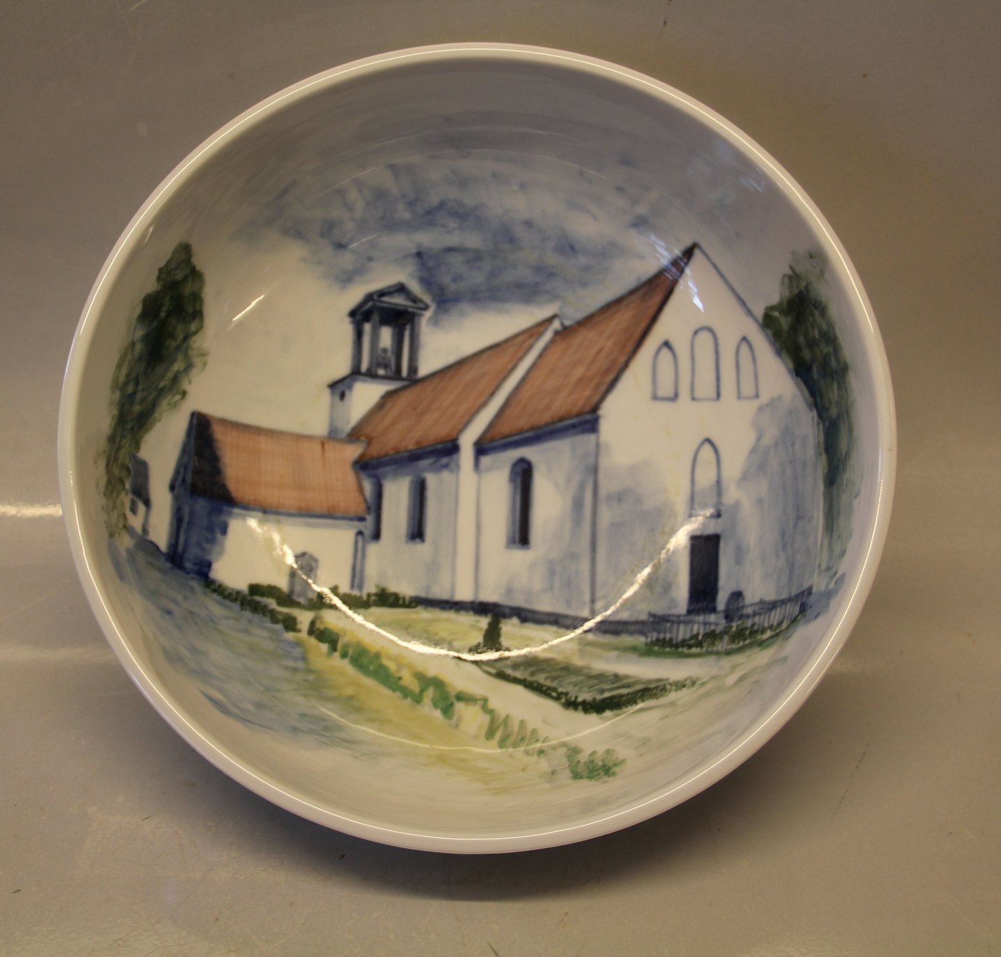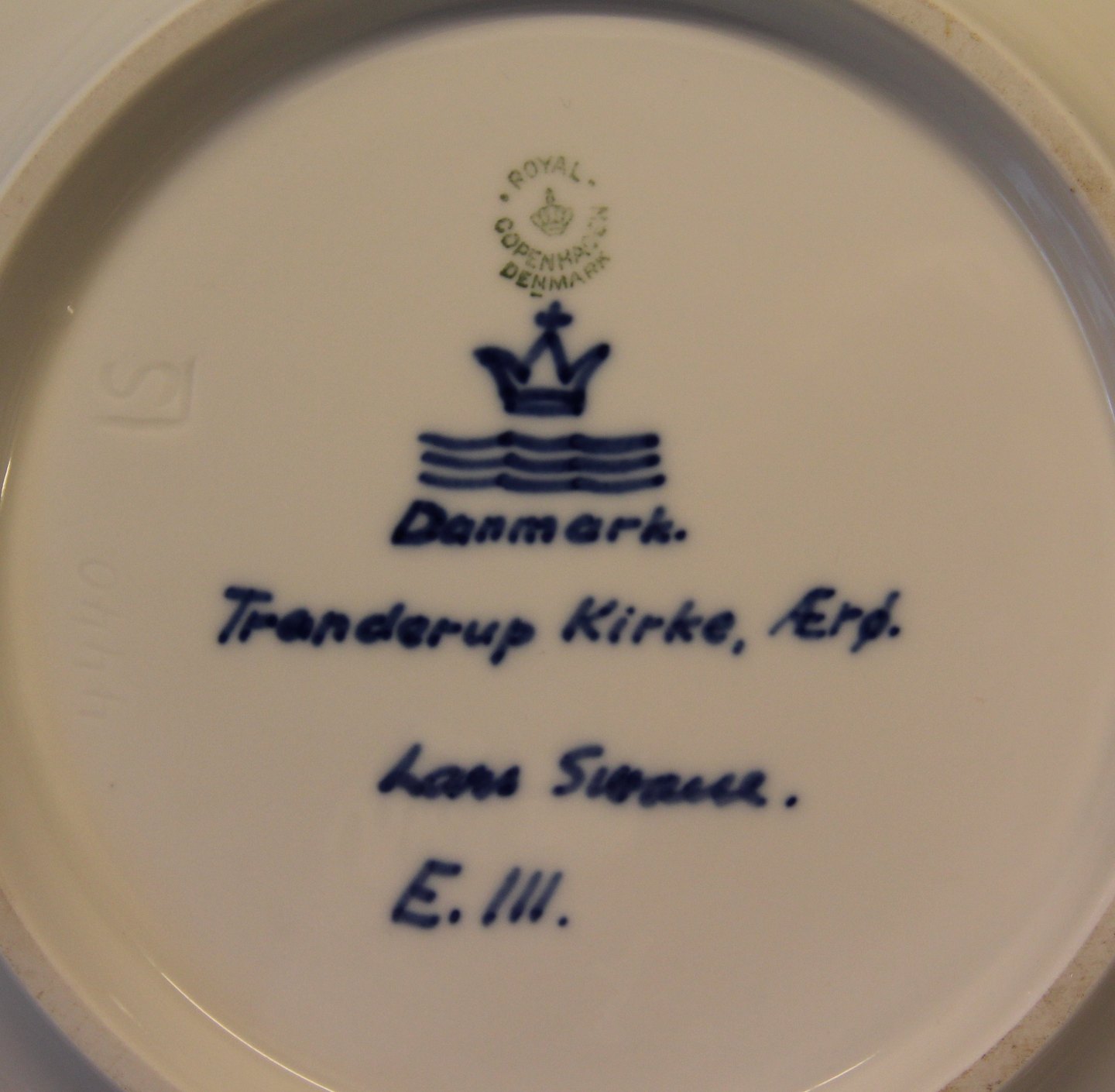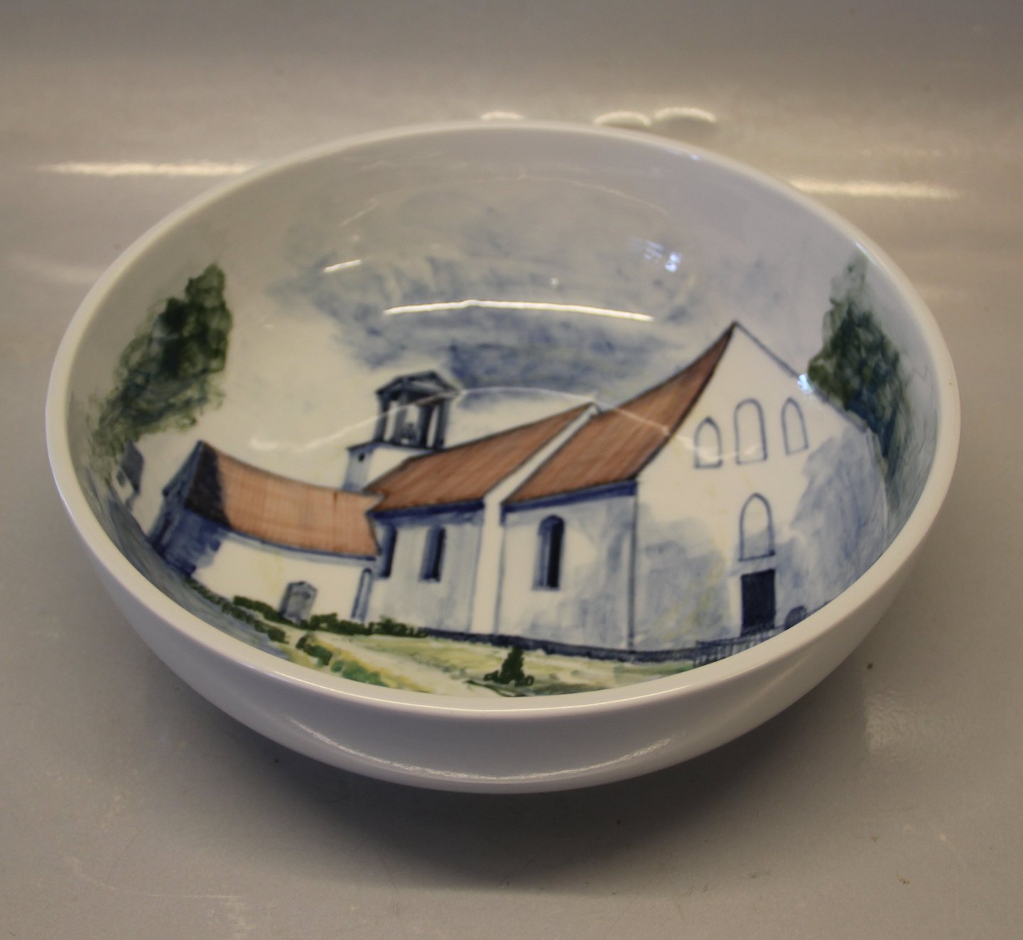 Beskrivelse: Kgl. Unika Skål 1957 Lars Swane Tranderup Kirke, Ærø LS E. III 9.5 x 27.5 cm fra Royal Copenhagen I hel og fin stand