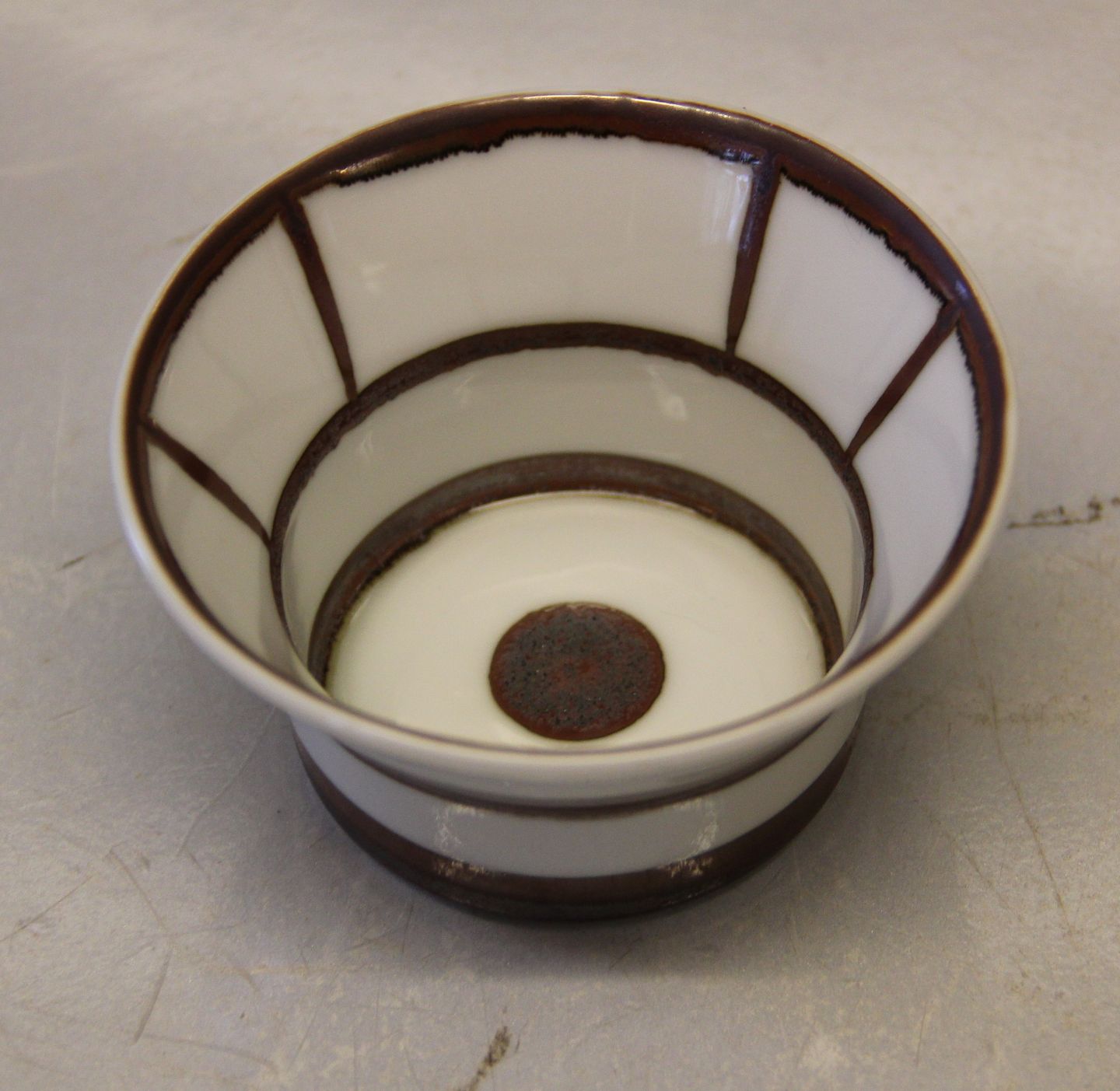 Beskrivelse: Bing & Grøndahl B&G 148-6001 Skål 5 x 9 cm Moderne brun dekoration I fin og hel stand.