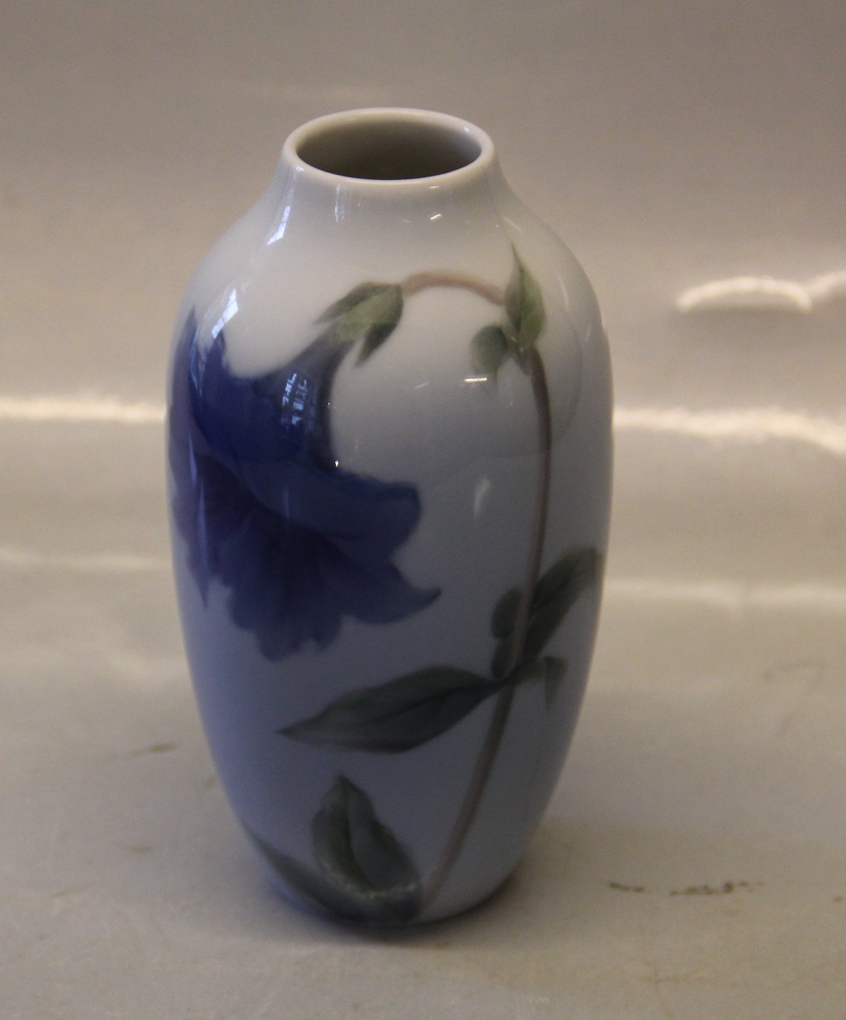 : 1910-239 Kgl. Vase med blå blomst 14 cm fra Royal Copenhagen I hel og fin stand