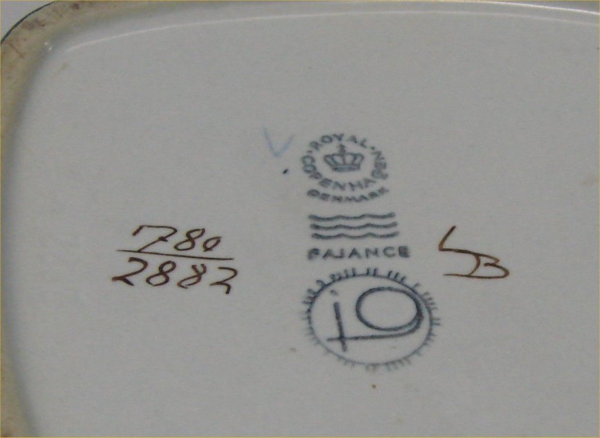 Beskrivelse: 780-2882 Blå Firkantet skål 11 x 11 cm Nils Thorsson, Baca Royal Copenhagen Aluminia Baca fajance