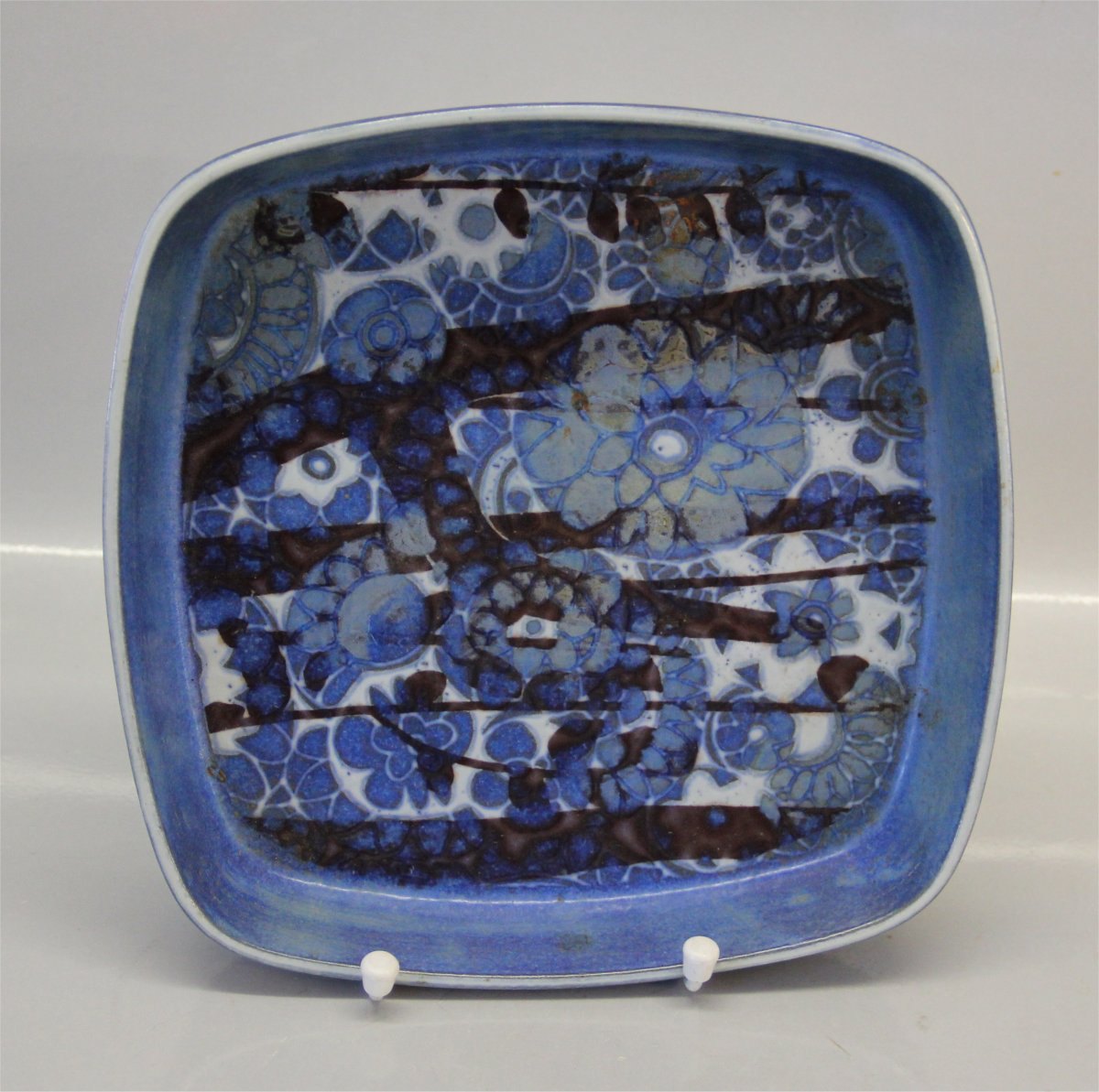 Aluminia Baca kunstfajance 780-2882 Firkantet blå skål 11 x 11 cm Nils Thorsson, Baca