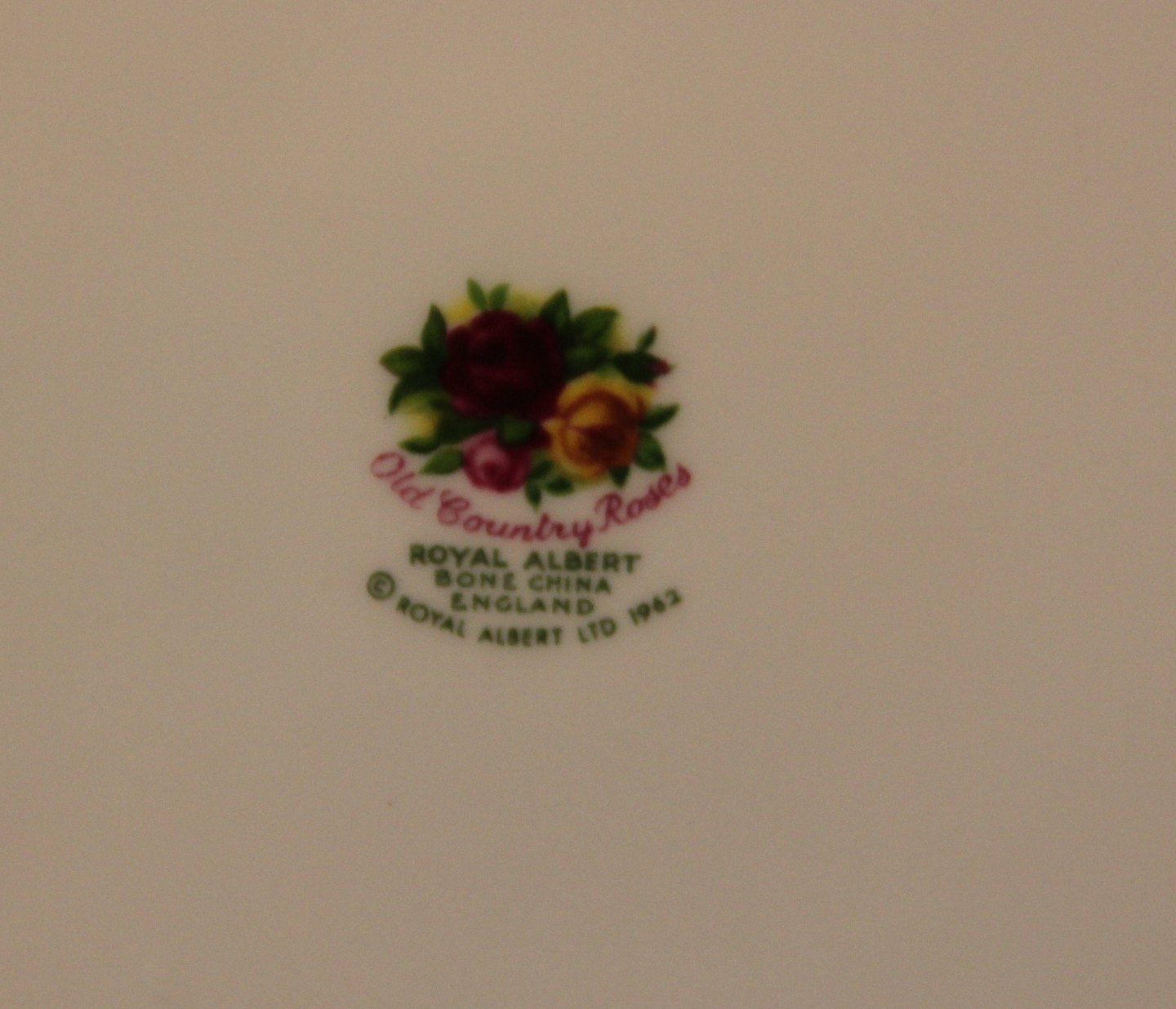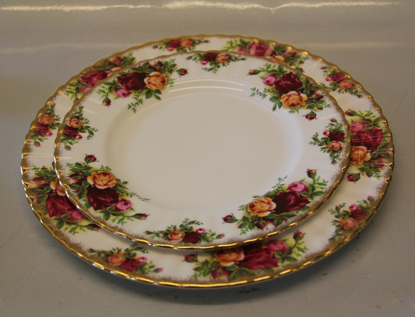 Middags tallerken 24 cm Landsbyrose Royal Albert Old Country Roses Bone China England. I God brugt stand med naturlige aldersrelaterede brugsspor