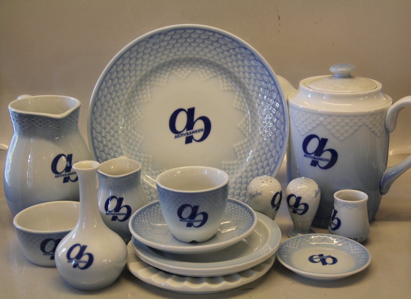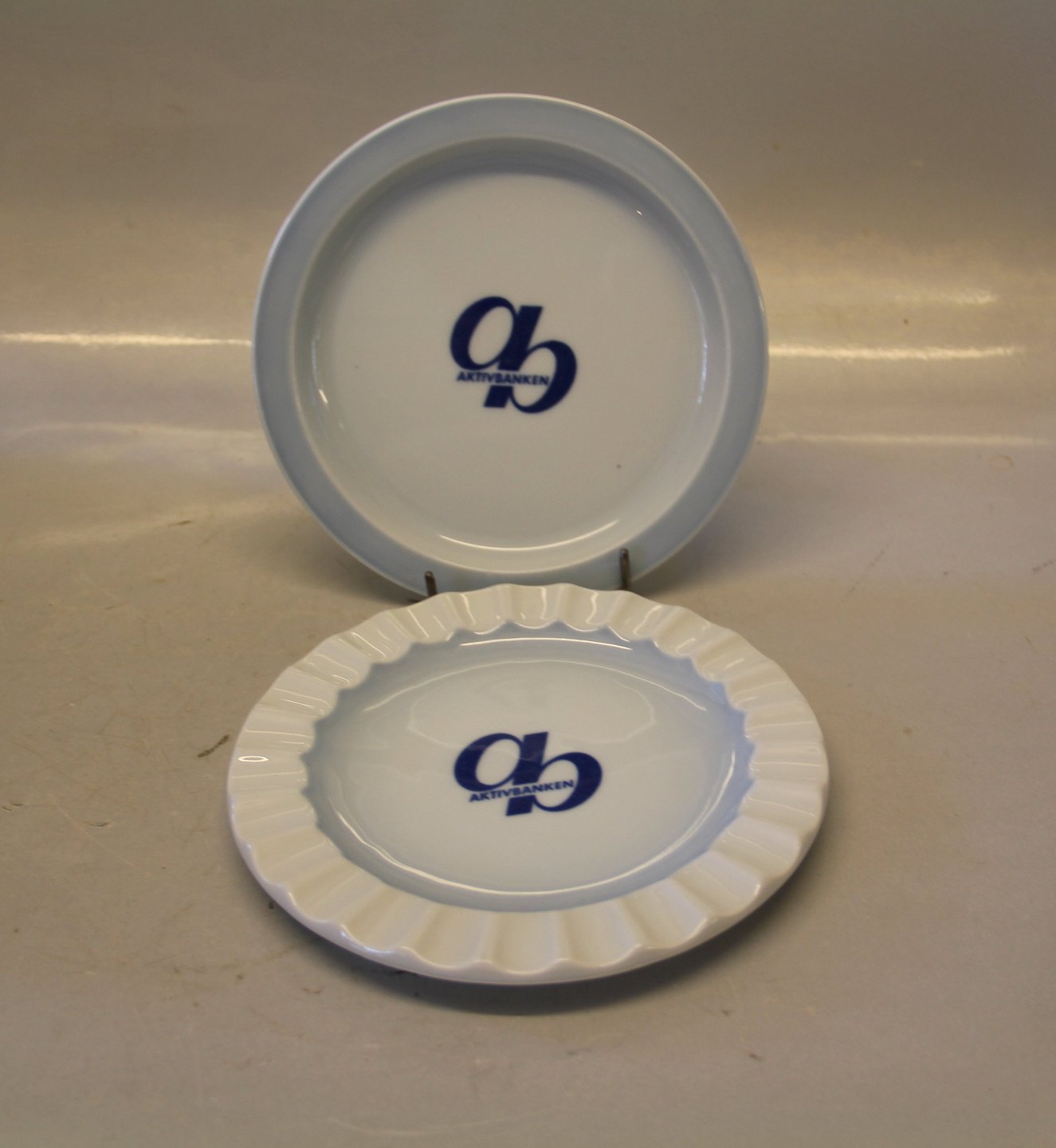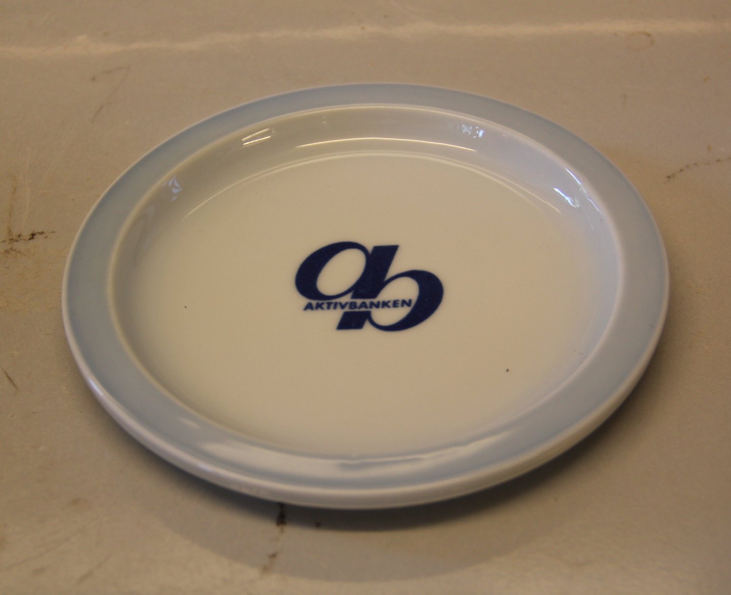 883 Fad, glat 16 cm Aktivbanken AB Logo Bing & Grøndahl Blå tone eller musling Hotelporcelæn med Logo