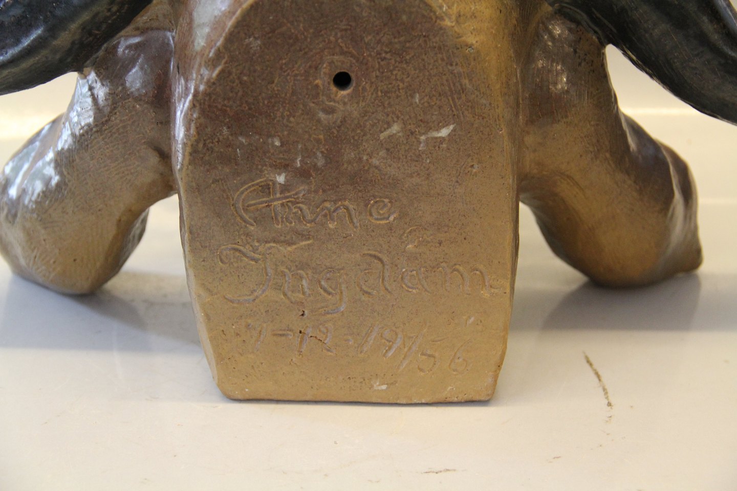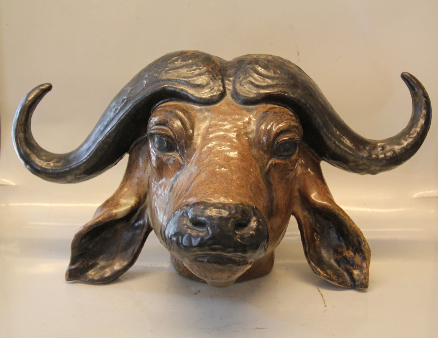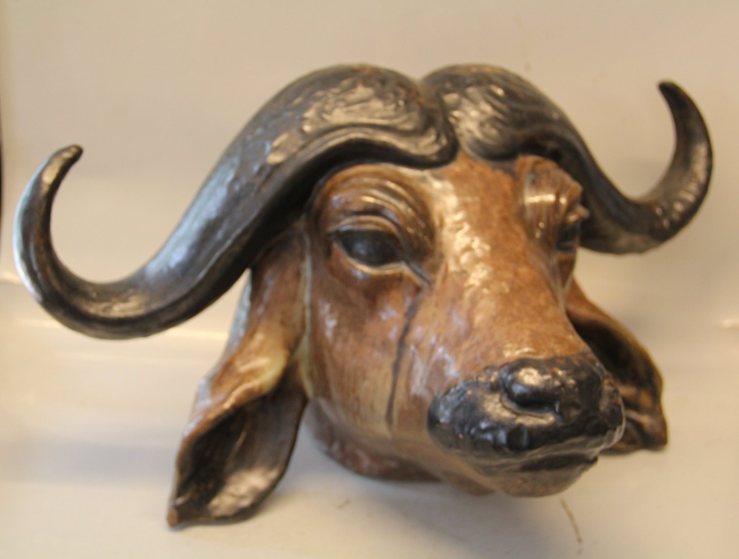 Bøffelhoved 26 x 49 x 32 cm Sign. Arne Ingdam, 1/12, 1956 Dansk Keramik