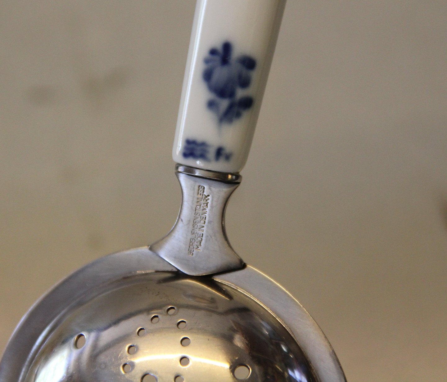 Tesi - strøske 18.5 cm Georg Jensen Stainless Steel med porcelænsskaft Kongelig Dansk Porcelæn Blå Blomst