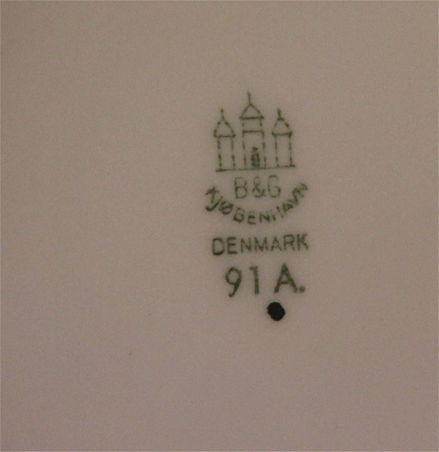 091 A Kaffekande 18,5 cm B&G Menuet: Hvidt porcelæn, takket guldkant, hvid, form 601