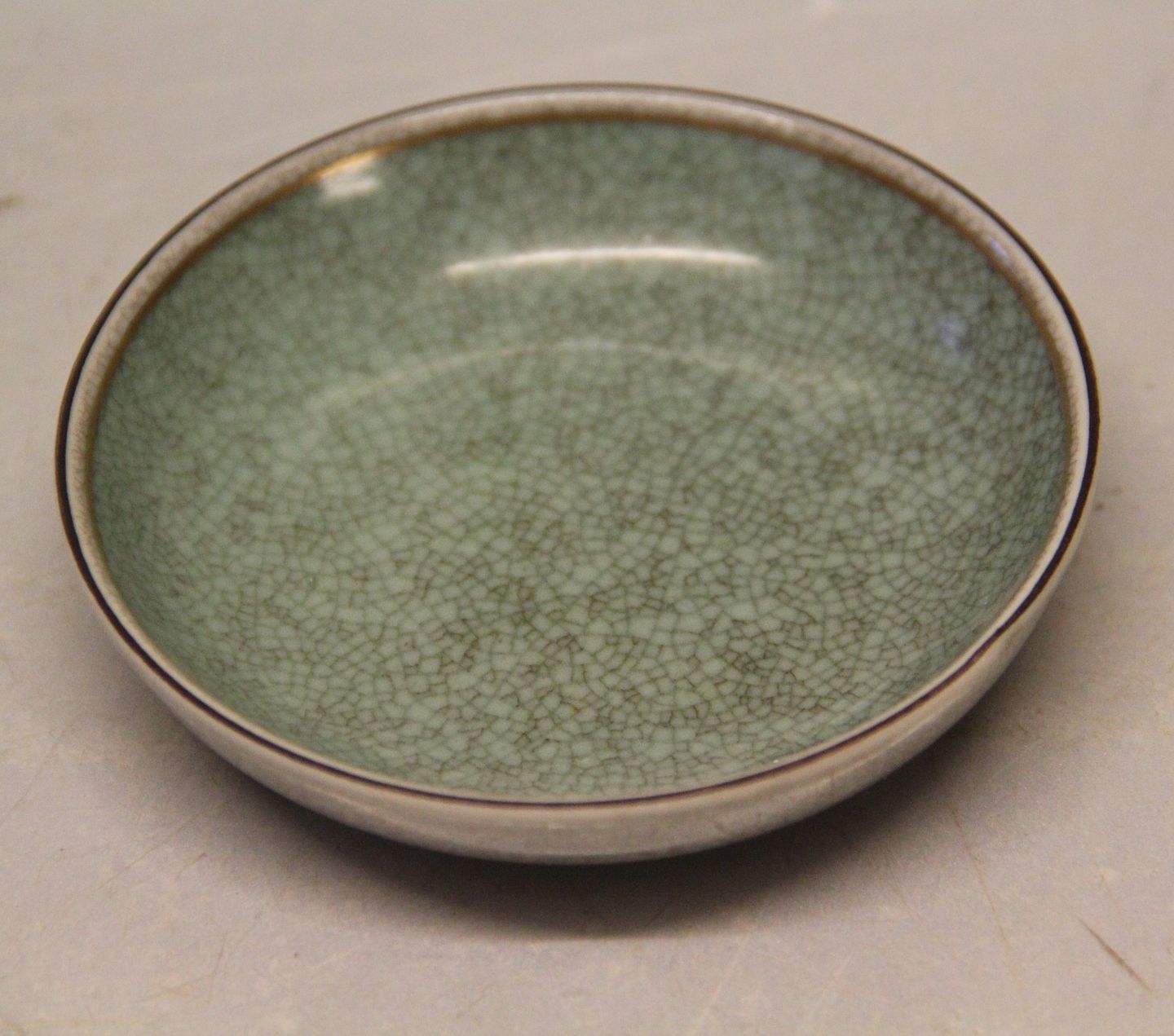 Kongelig Dansk Craquelé, Craquele 457-2653 Kgl. Grøn skål med guldkant 9.5 cm