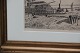 : Radering Havnemotiv 29.5 x 37 cm inklusiv Guldramme