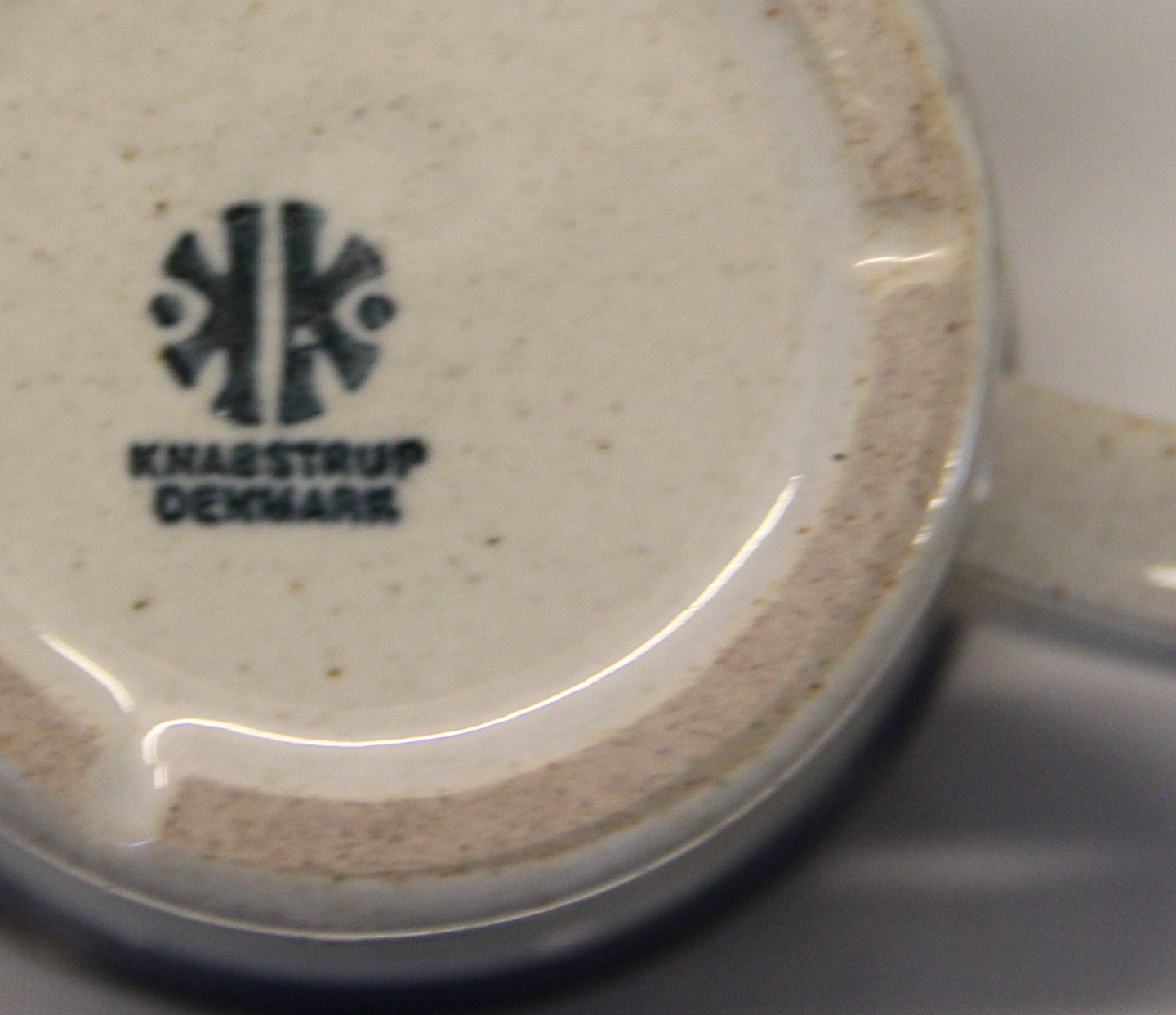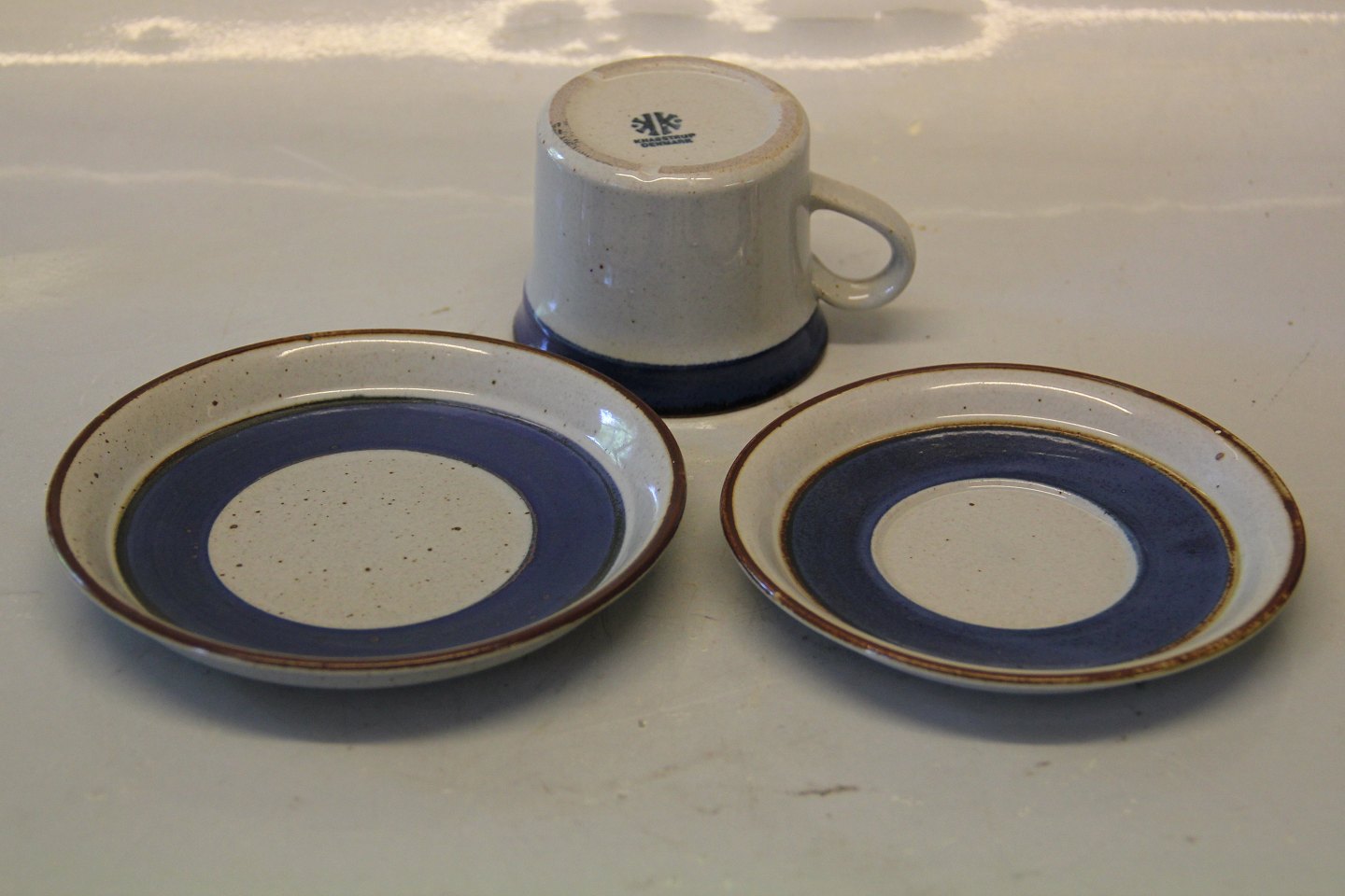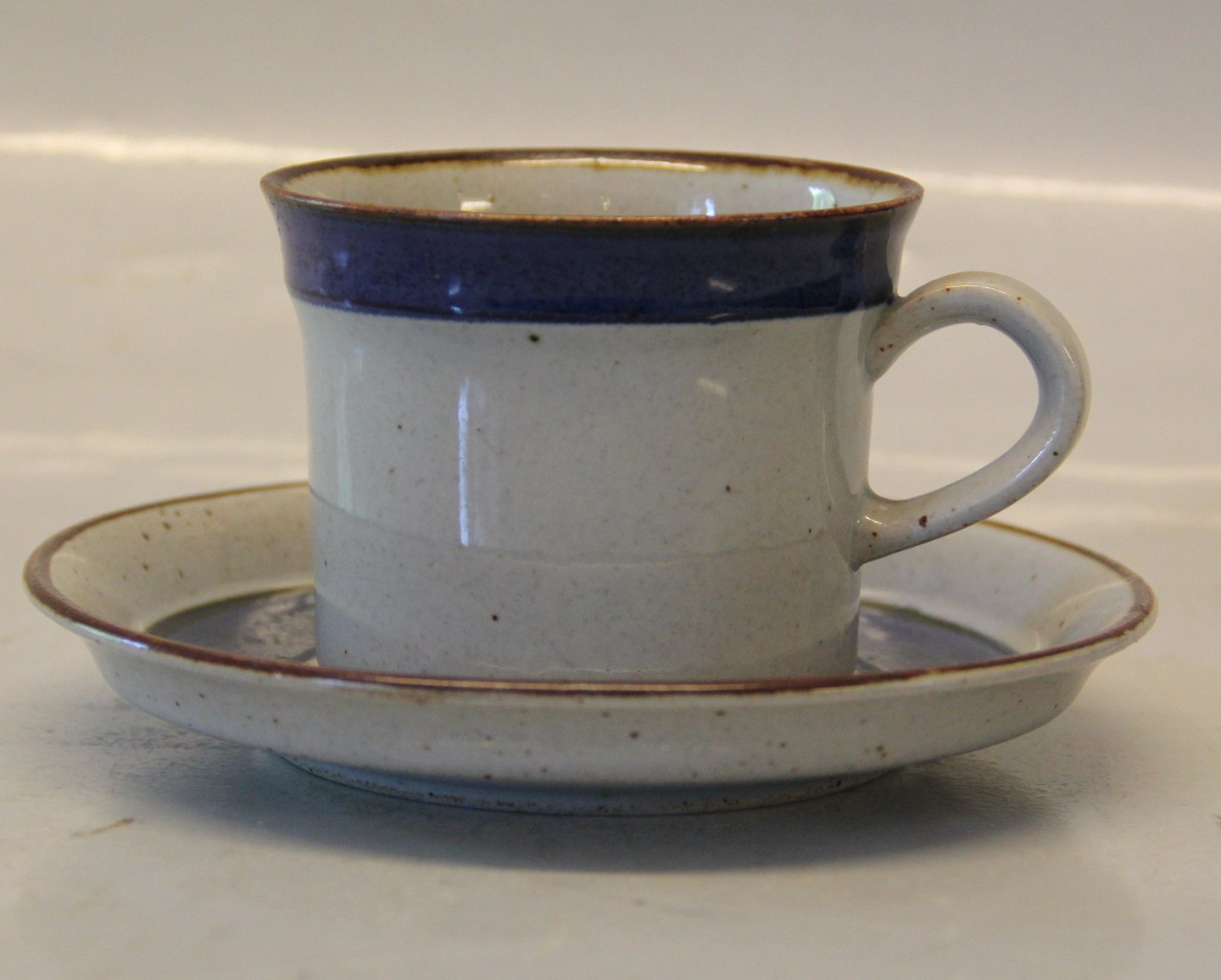 Christine Blue and Grey Stoneware Danish Art Pottery Knabstrup Coffee cup 6.8 x 8.4 cm & saucer 15 / 13.6 cm