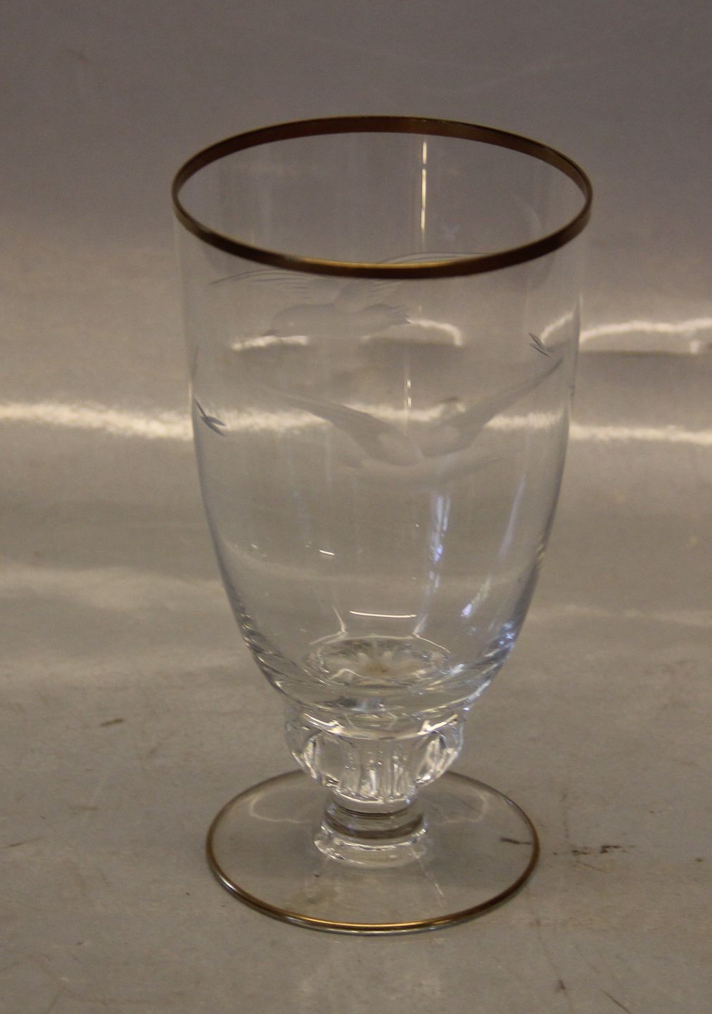 Ølglas 14 cm Mågeglas Lyngby glasservicce - drikkeglas med guldkant og slebne måger - slebet glas