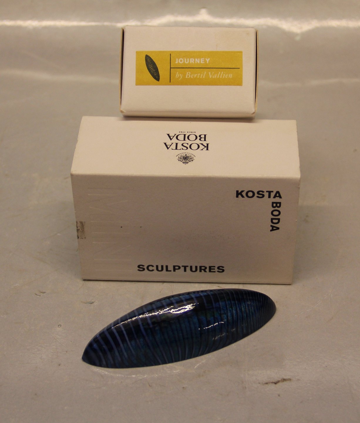 Beskrivelse: Kunstglas Mini skulptur Kosta Boda Mini Sculptures Journey 10 cm 94312 Bertil Vallien - Rejsen - Brevvægt