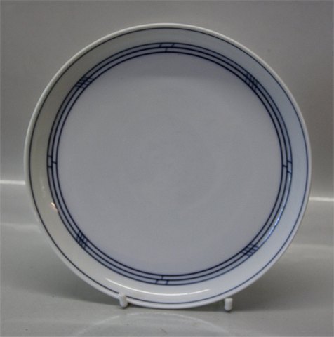 326 Tallerken 21.5 cm (026) B&G Delfi: Kraftigt hvidt porcelæn med mønster med blå streger, som Olympia, form 43 Bing & Grøndahl Delphi