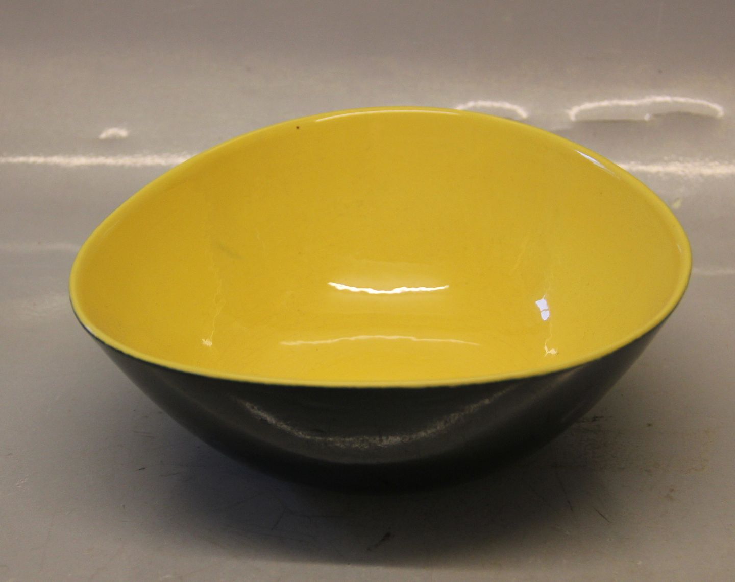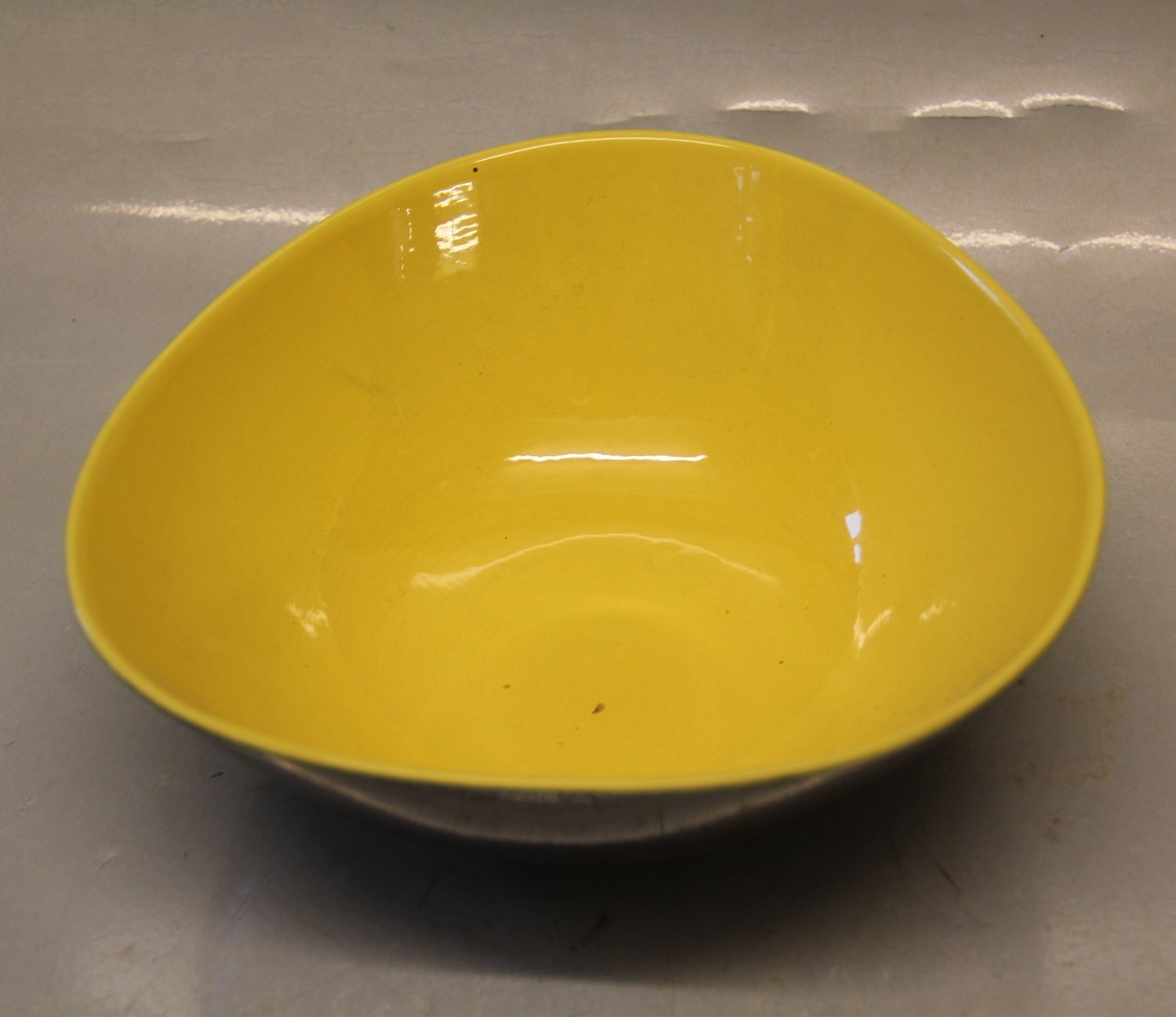 : Stor Skål 8.5 x 20 cm tresidet Congo Kronjyden retrostel i gult og sort. l I fin og hel stand.