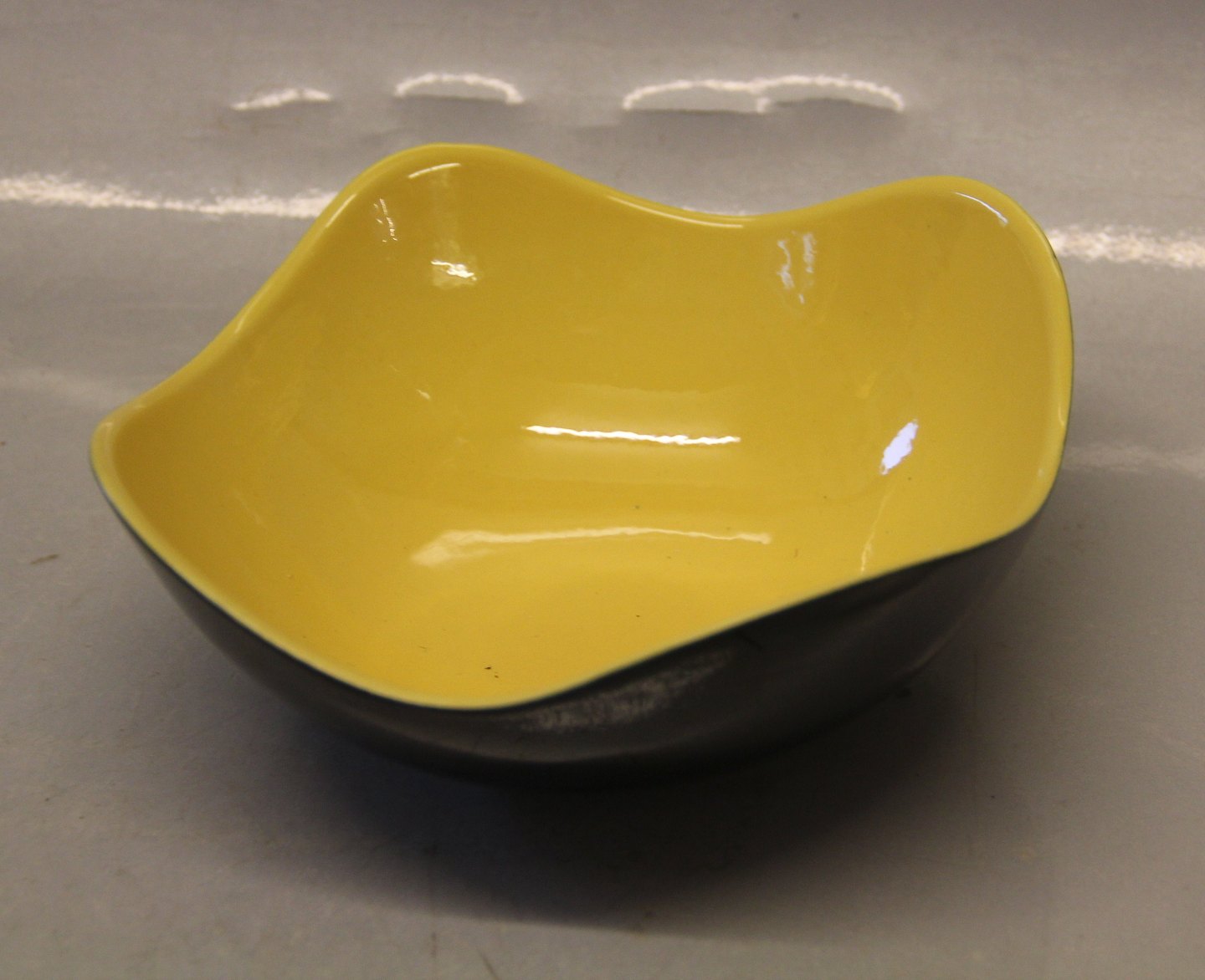 : Skål 4-sidet 7 x 17 cm Congo Kronjyden retrostel i gult og sort. l I fin og hel stand.