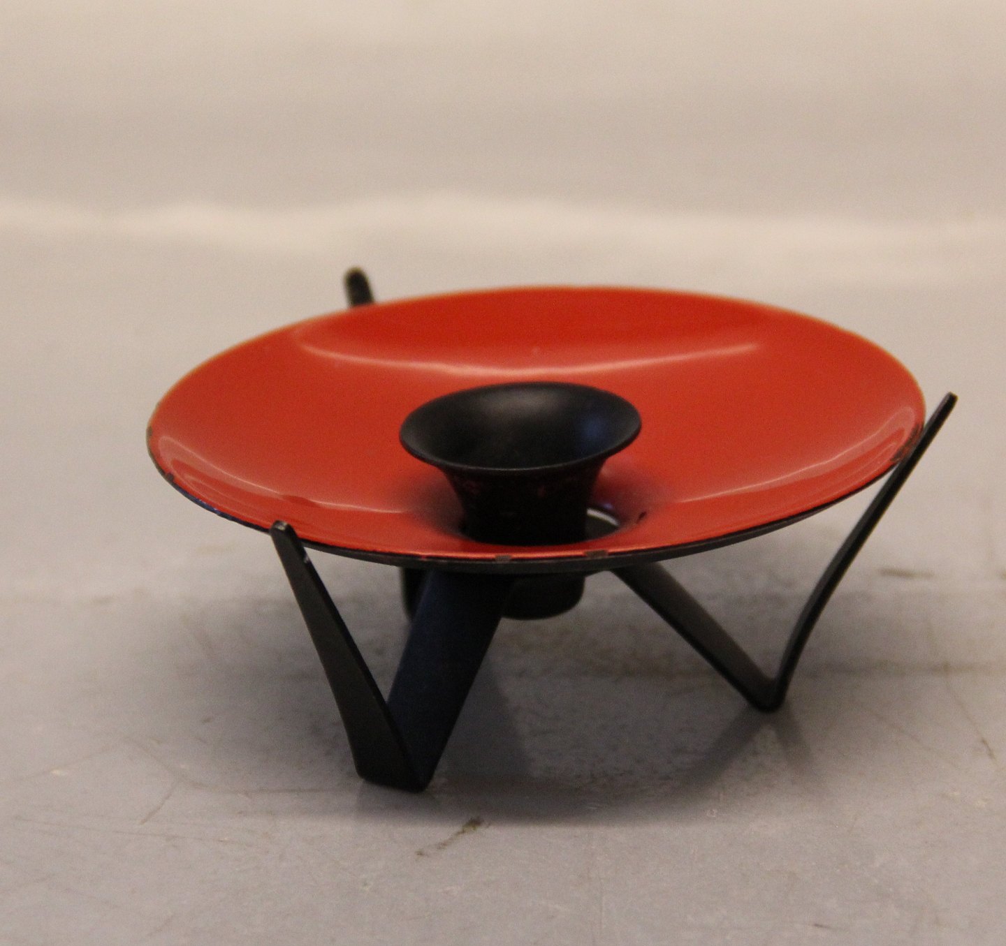 Retro Rød og sort Krenit emalje lysestage 4 x 9.5 cm